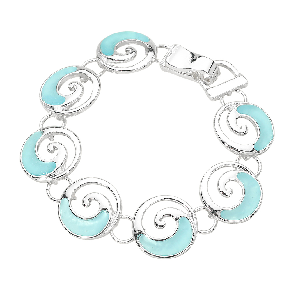 • Elegant swirl link bracelet designed with flowing wave-inspired shapes and a secure magnetic closure for effortless wear. A versatile accessory that complements casual and resort looks, making it ideal for beach themes, gift shops, and seasonal jewelry collections.