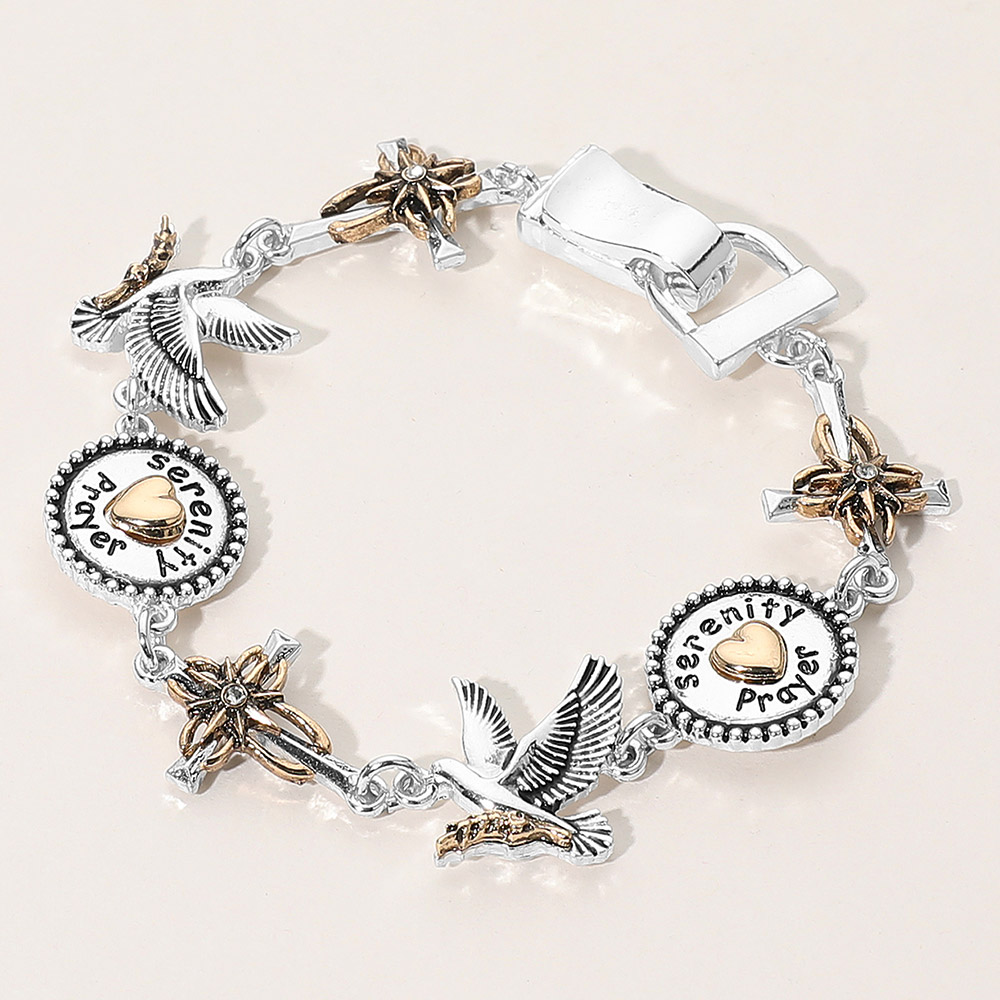 Details • Size : 0.75" H, 8" L • Magnetic Closure • Carry inspiration wherever you go with this Serenity Prayer charm bracelet featuring symbolic accents and engraved message details. A meaningful accessory designed to express faith, hope, and reflection, perfect for thoughtful gifting or personal wear on moments of mindfulness and encouragement. • Lead and Nickel Compliant