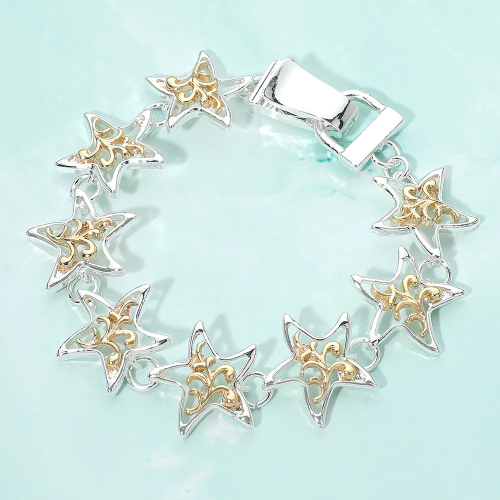 Details • Size : 0.75" H, 7.5" + 0.75" L • Magnetic Closure • This starfish charm bracelet showcases linked starfish accents that create a playful, ocean-inspired look. Designed for everyday styling or gifting, it adds movement and personality to any accessory assortment and fits perfectly into beach, summer, and coastal-themed jewelry collections. • Lead and Nickel Compliant