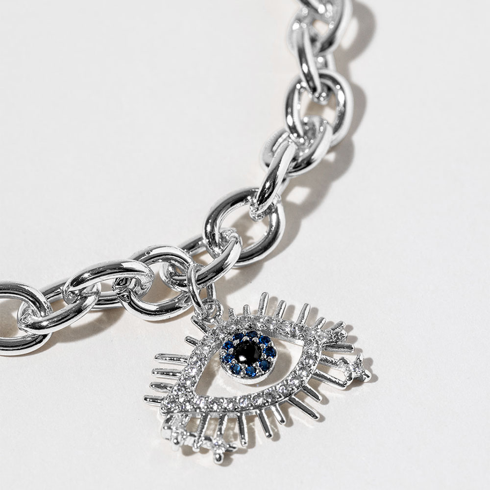 • This evil eye chain bracelet features a symbolic charm design paired with a convenient magnetic clasp for effortless wear. Created for everyday styling, it works well worn alone or layered with other bracelets. A strong choice for boutique jewelry collections, gift assortments, and trend focused displays appealing to customers drawn to meaningful yet fashionable accessories.