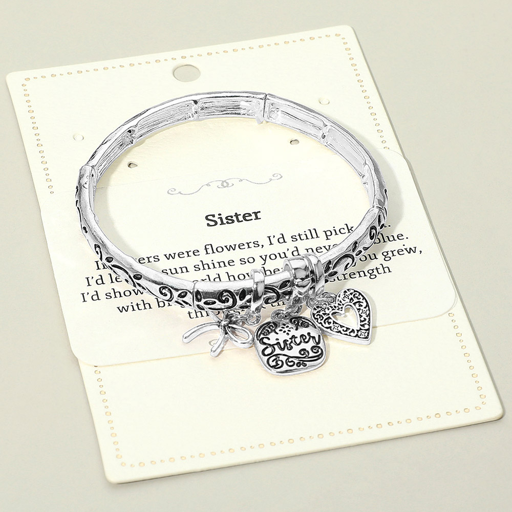 Sister Message Bow Heart Charm Stretch Bracelet Sister Message Bow Heart Charm Stretch Bracelet Sister Message Bow Heart Charm Stretch Bracelet Sister Message Bow Heart Charm Stretch Bracelet