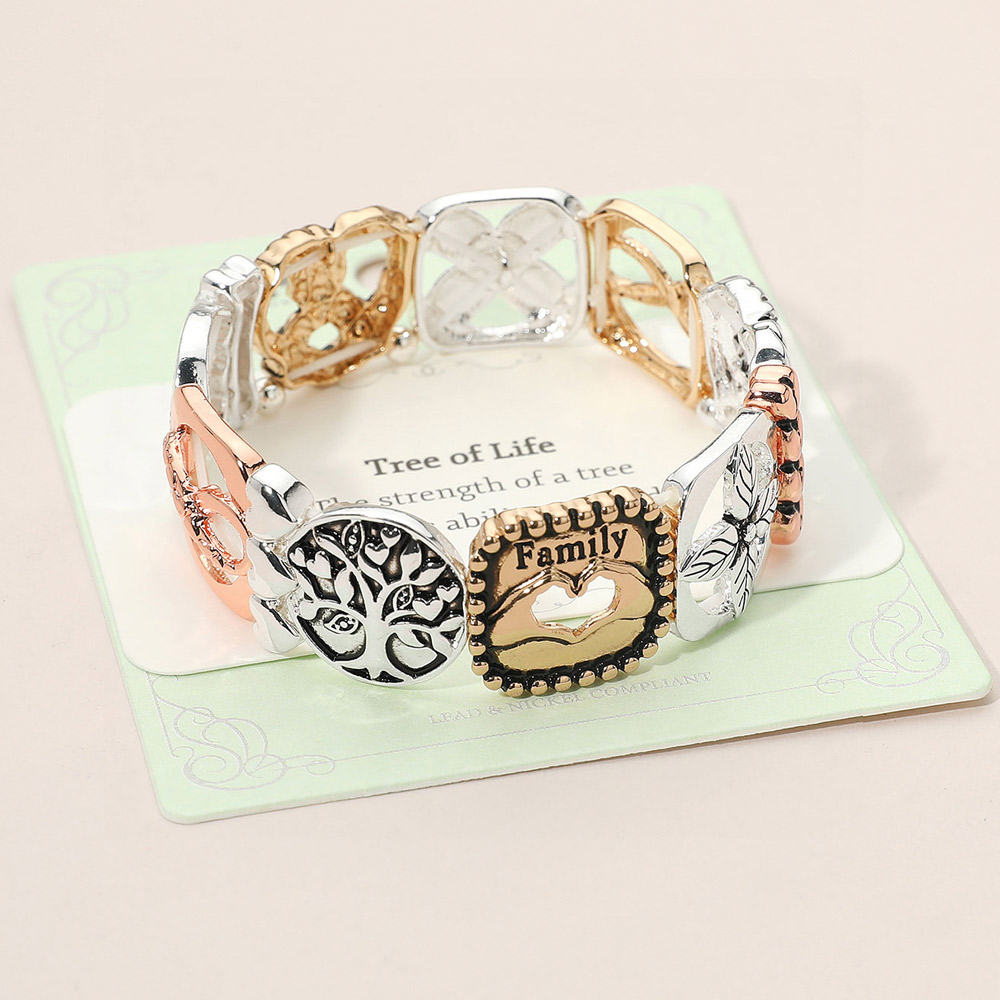 Details • Size : 0.8" H • Stretchable • Celebrate connection and strength with this Tree of Life family bracelet featuring symbolic engraved charms. Its flexible stretch design offers a comfortable fit, making it a meaningful accessory that expresses love, unity, and timeless inspiration for everyday wear. • Lead and Nickel Compliant