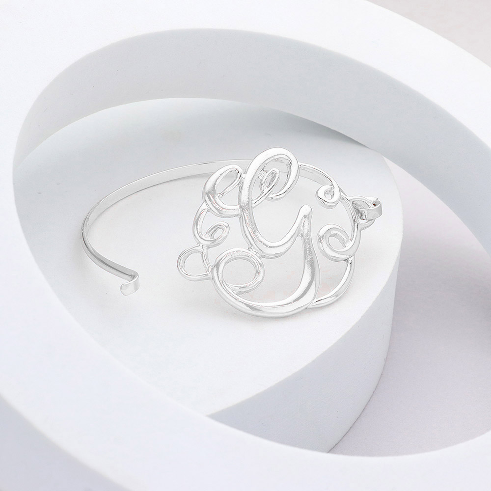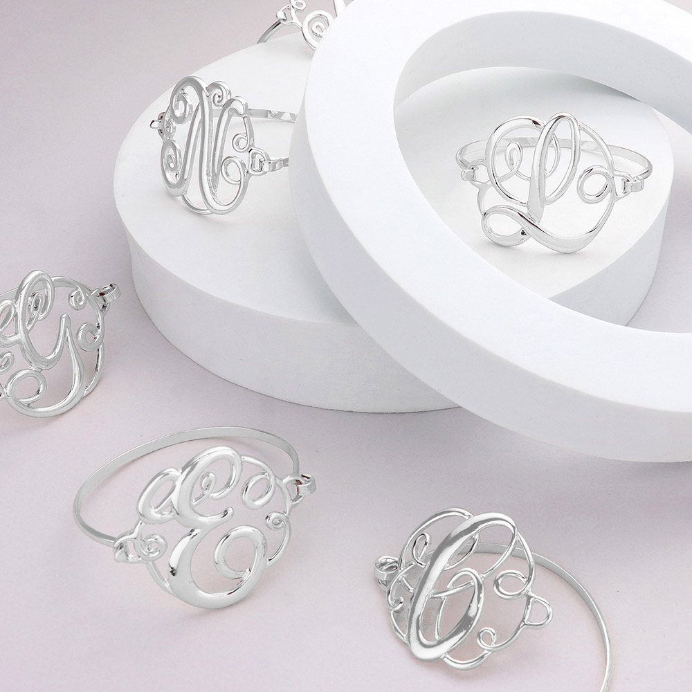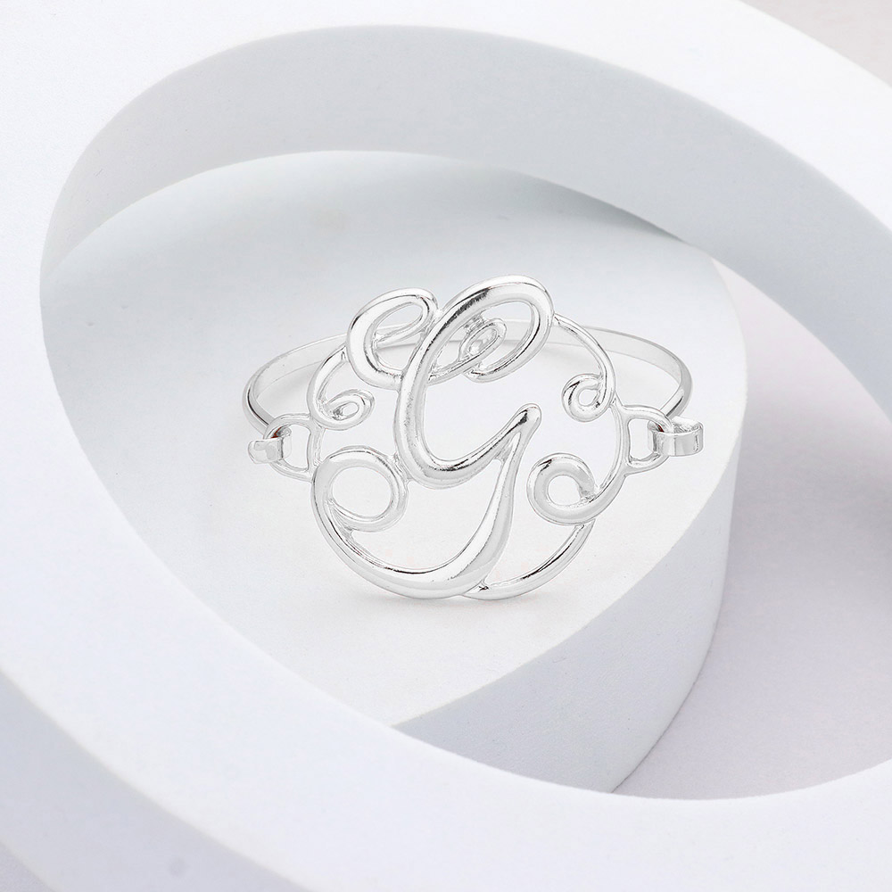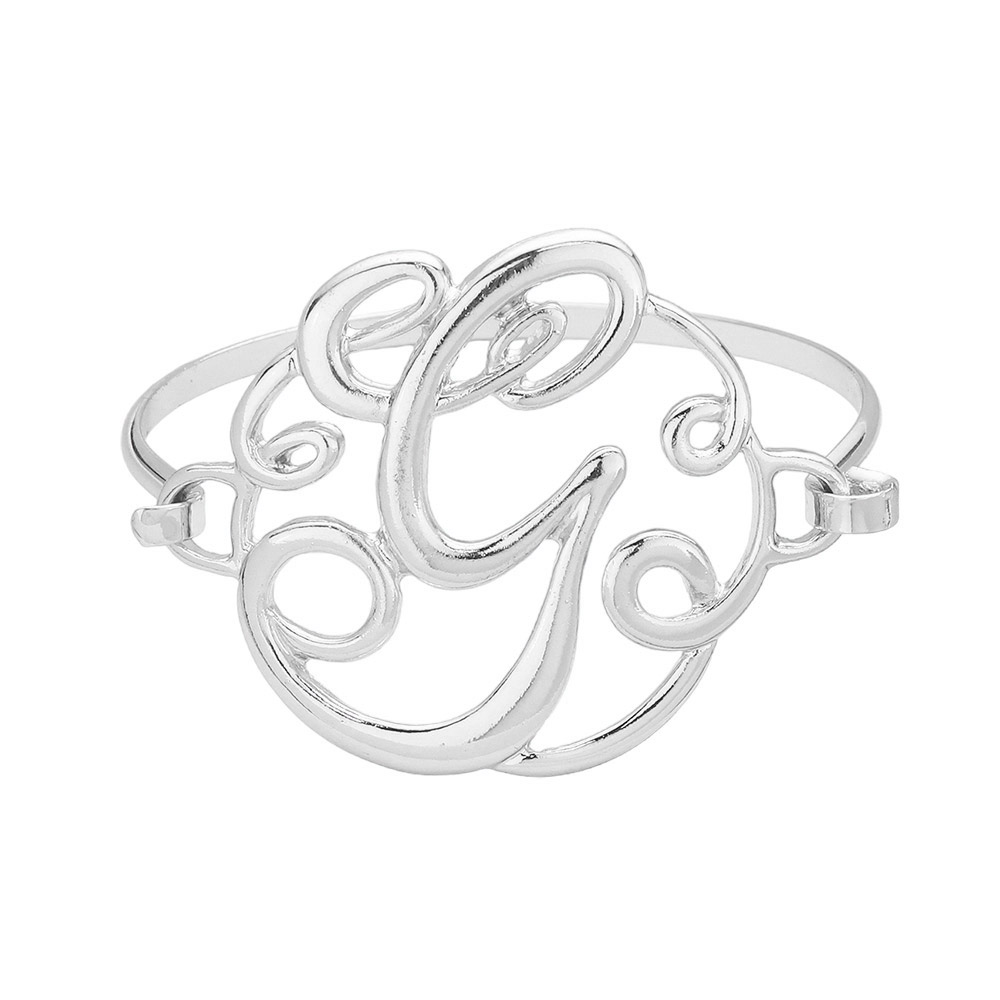 -T- White Gold Dipped Initial Monogram Metal Pendant Necklace