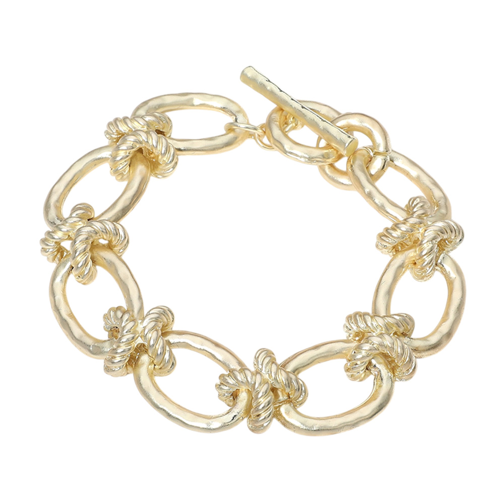 14K Gold Plated Hammered Matte Chunky Oval Link Toggle Bracelet