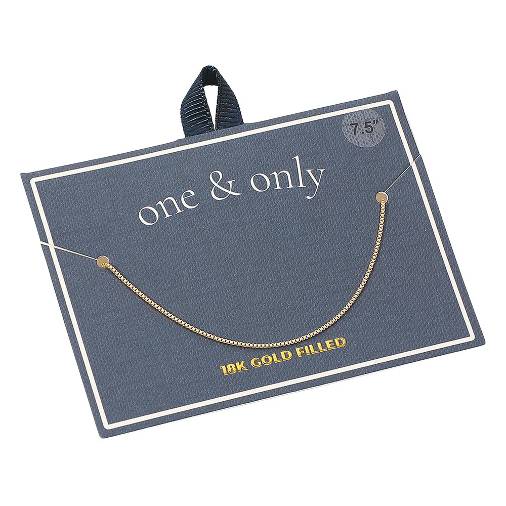 Details • Size : 0.1" H (1mm), 7.5" L • Lobster Clasp Closure • Elegant box chain bracelet featuring slim, polished links for a smooth and refined look. Its minimalist design makes it ideal for layering or everyday wear, adding a subtle touch of sophistication and timeless style to any jewelry collection. • Lead and Nickel Compliant • Made In Brazil