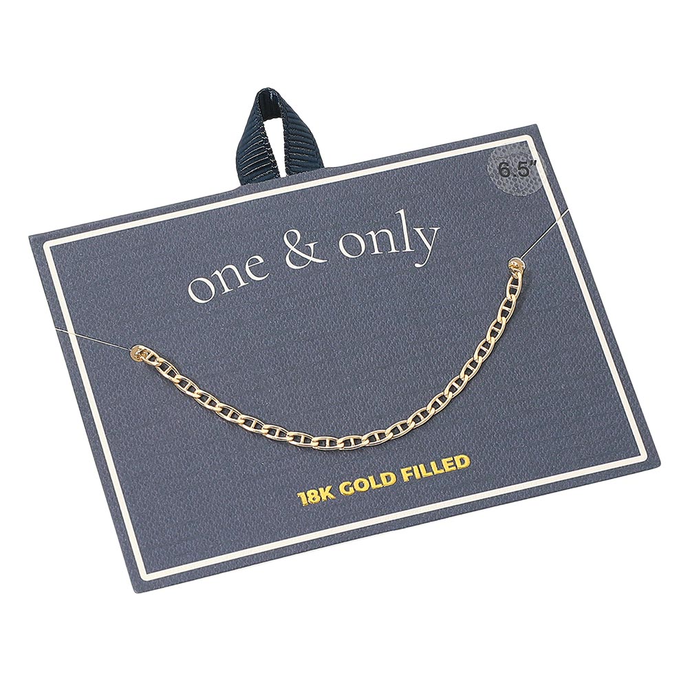 Details • Size : 0.1" H (2mm), 6.5" L • Lobster Clasp Closure • Timeless mariner link chain bracelet featuring sleek rectangular links with a refined polished finish. Ideal for everyday wear or layering, this bracelet offers a sophisticated minimalist design that complements both casual and formal styles effortlessly. • Gold Filled • Lead and Nickel Compliant • Made In Brazil