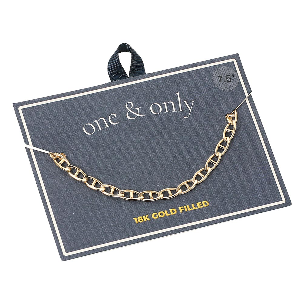 Details • Size : 0.2" H (4mm), 7.5" L • Lobster Clasp Closure • Timeless mariner link chain bracelet featuring sleek rectangular links with a refined polished finish. Ideal for everyday wear or layering, this bracelet offers a sophisticated minimalist design that complements both casual and formal styles effortlessly. • Lead and Nickel Compliant • Gold Filled • Made In Brazil