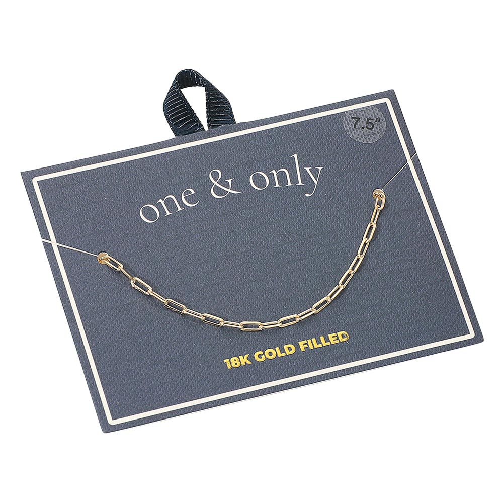 • Elegant chain bracelet featuring a minimalist link design for timeless sophistication. Lightweight and versatile, it’s perfect for layering or wearing alone. Presented on a “one & only” card for effortless gifting and everyday elegance.