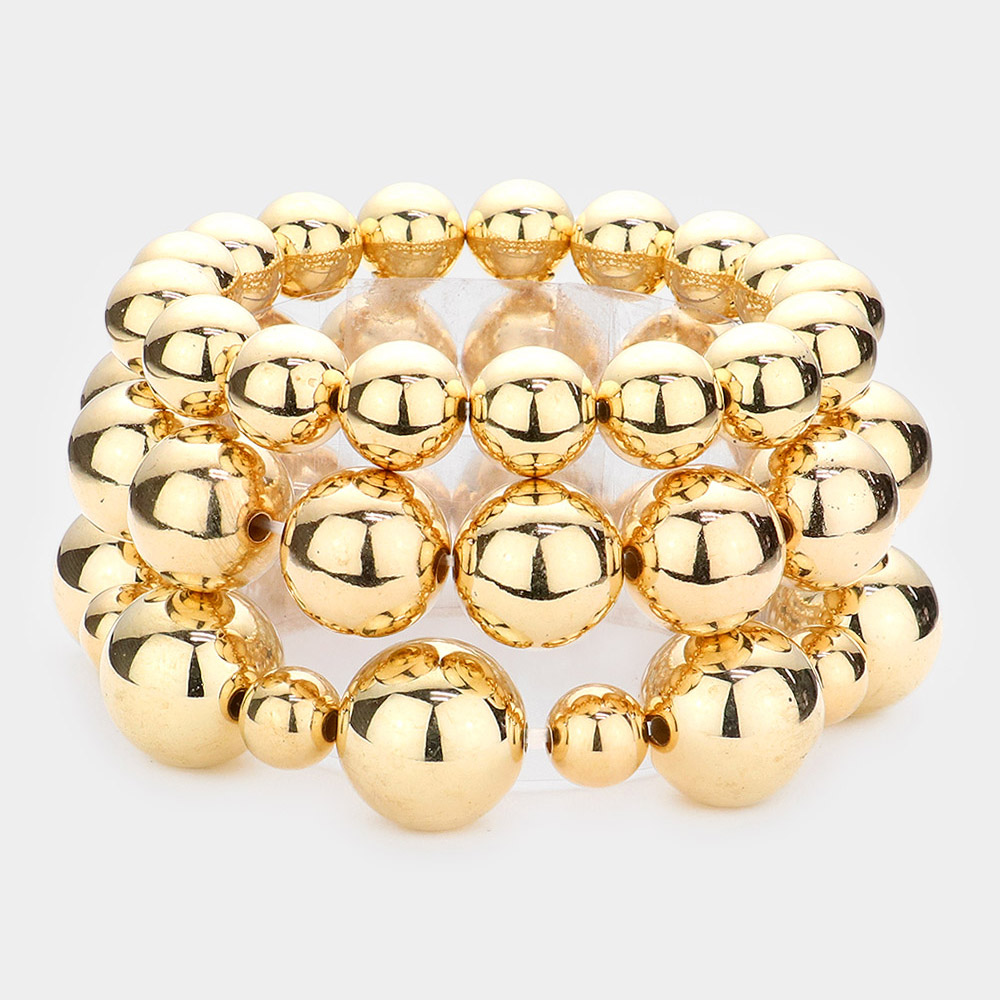 Rhinestone Embellished Detail Metal Ball Cuff Bracelet