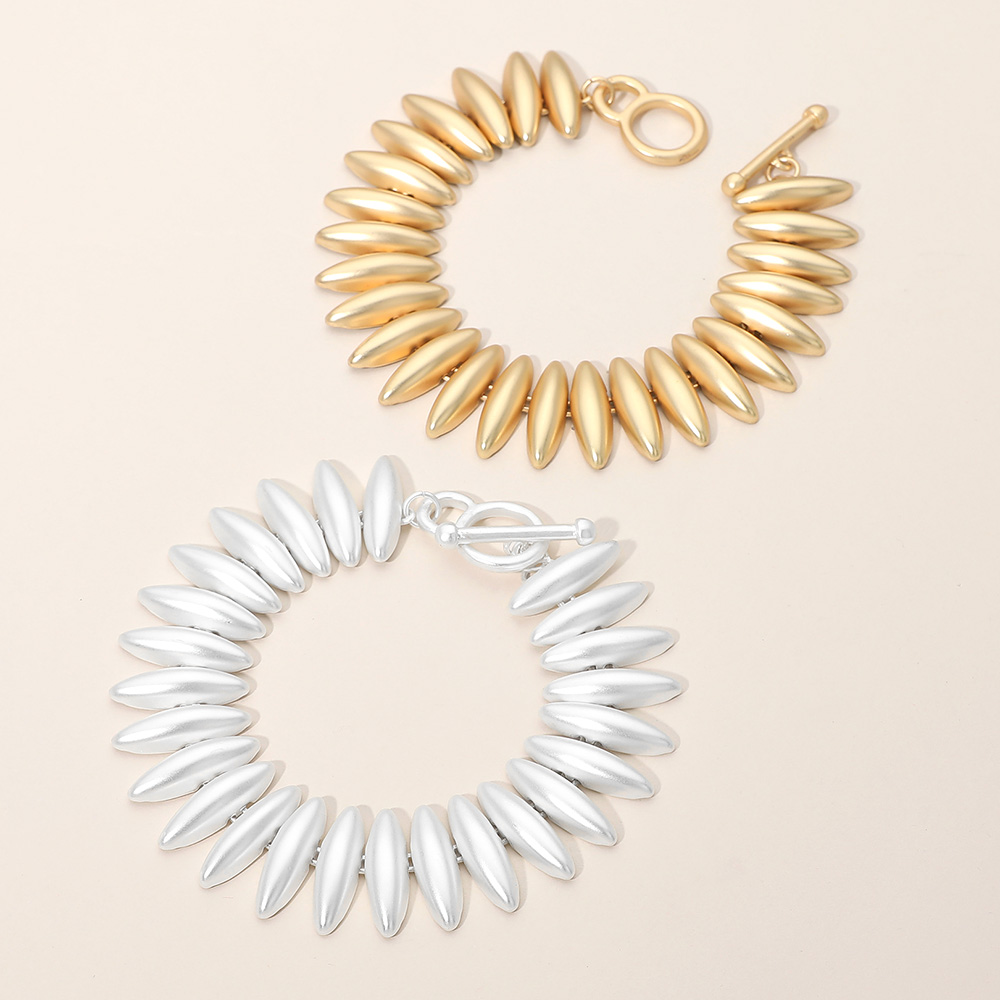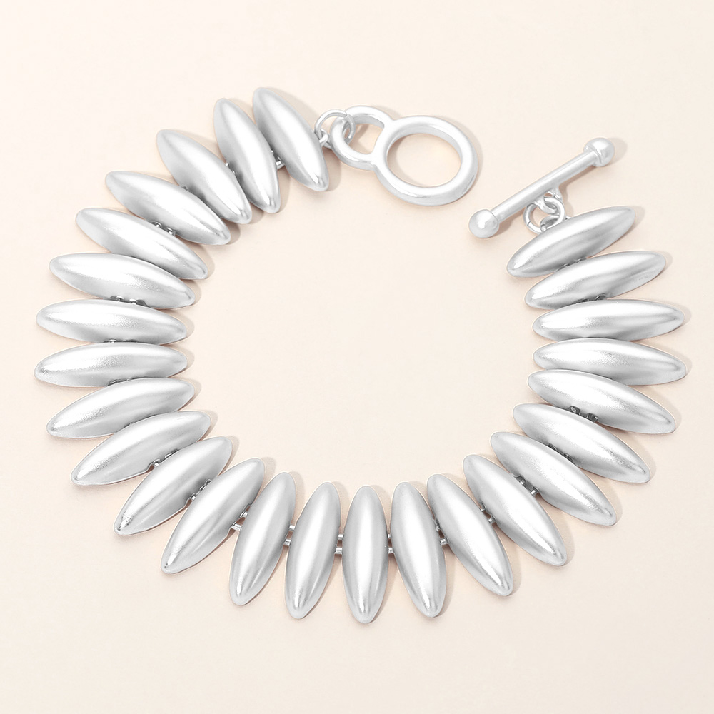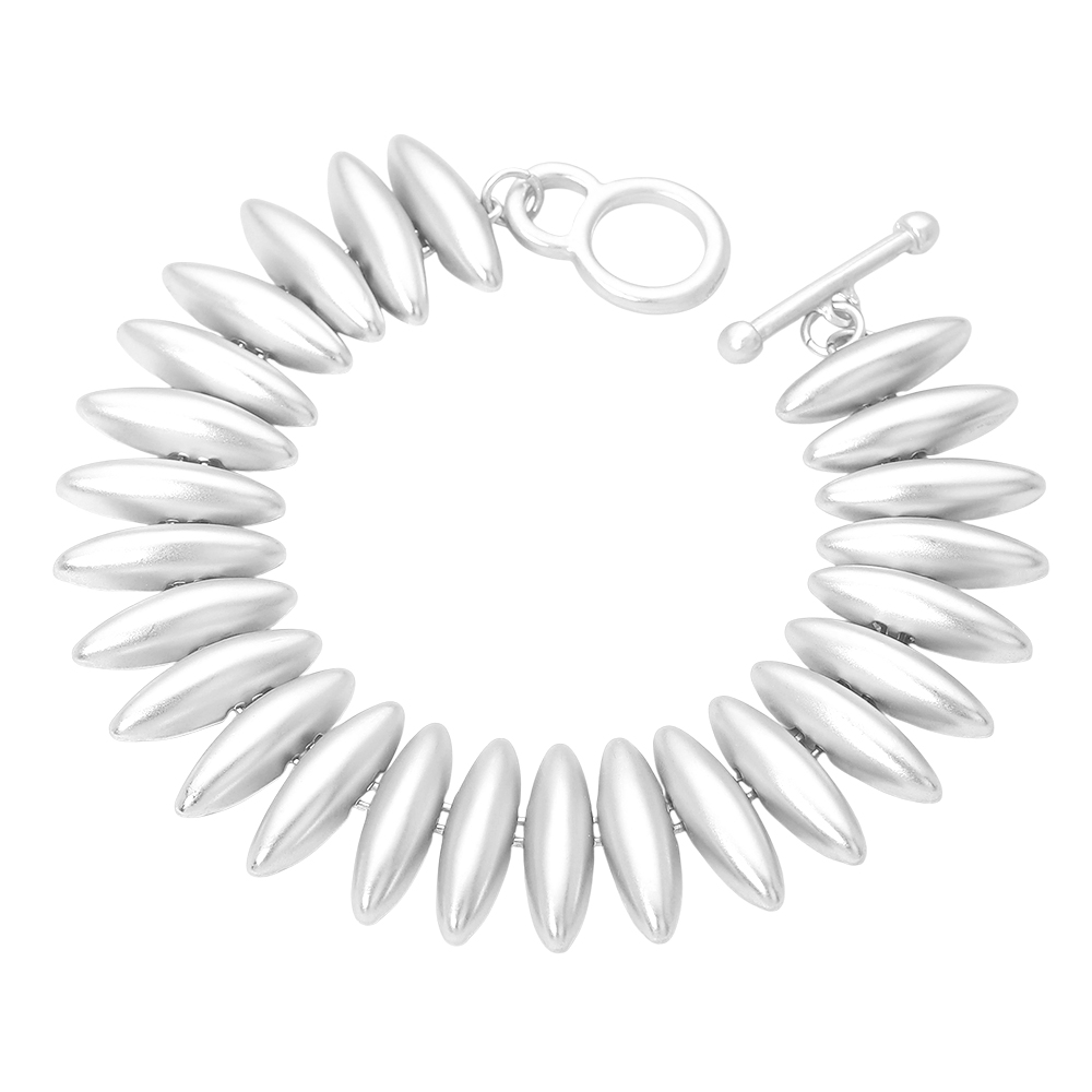 • This sleek oval bead bracelet features a bold, sculpted silhouette with smooth elongated beads and a modern toggle closure. Designed to make a statement while remaining versatile, it pairs effortlessly with casual outfits or elevated looks, offering a refined accessory for everyday wear, layering, gifting, or special occasions.