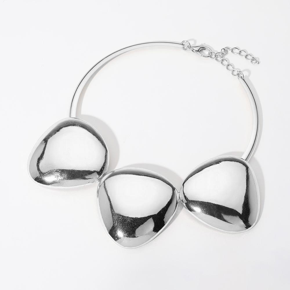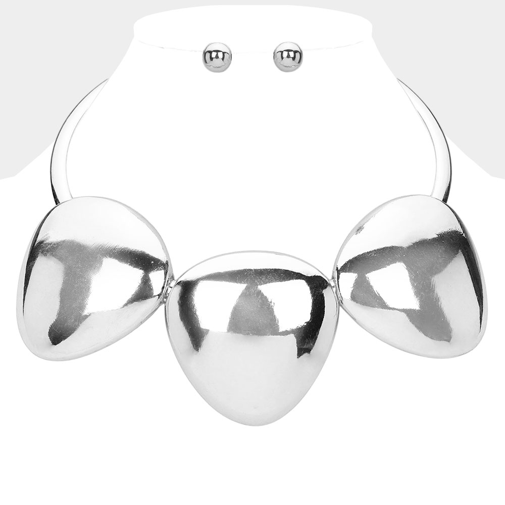 Chunky Triple Metal Triangle Dome Statement Necklace