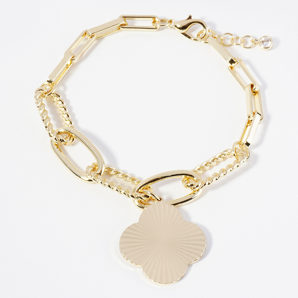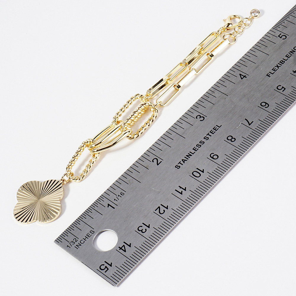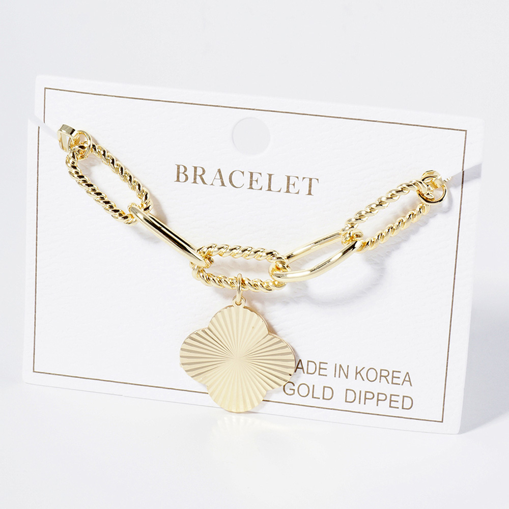 Gold Dipped Textured Metal Quatrefoil Charm Chunky Chain Bracelet