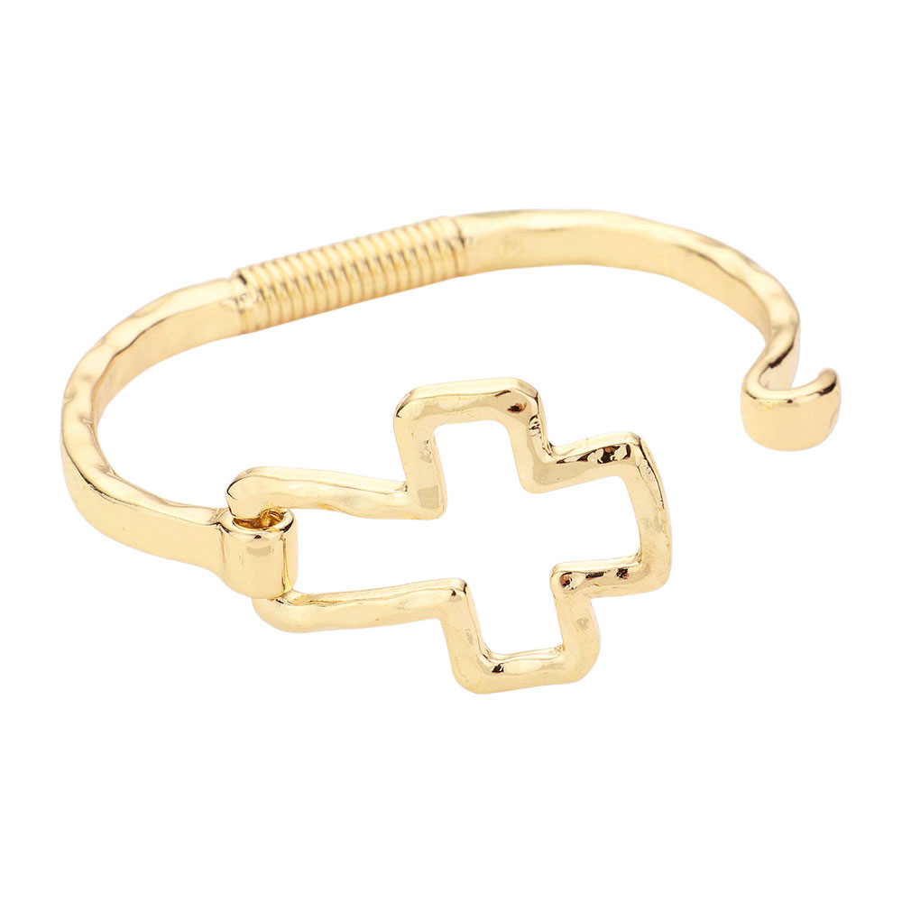 Hammered Open Metal Cross Hook Bracelet