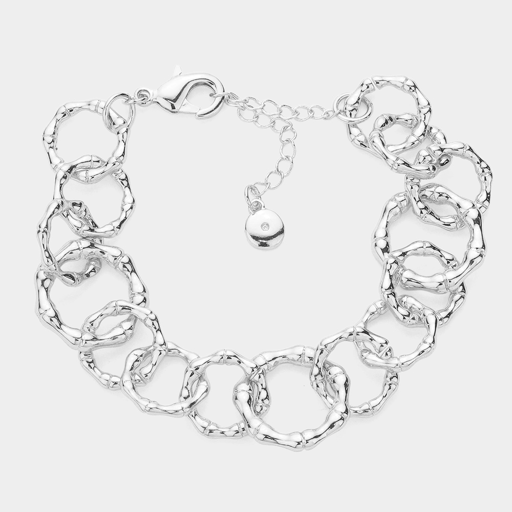 5PCS - Resin Bamboo Beaded Stretch Glossy Metal Bangle Stackable Multi Layered Bracelets