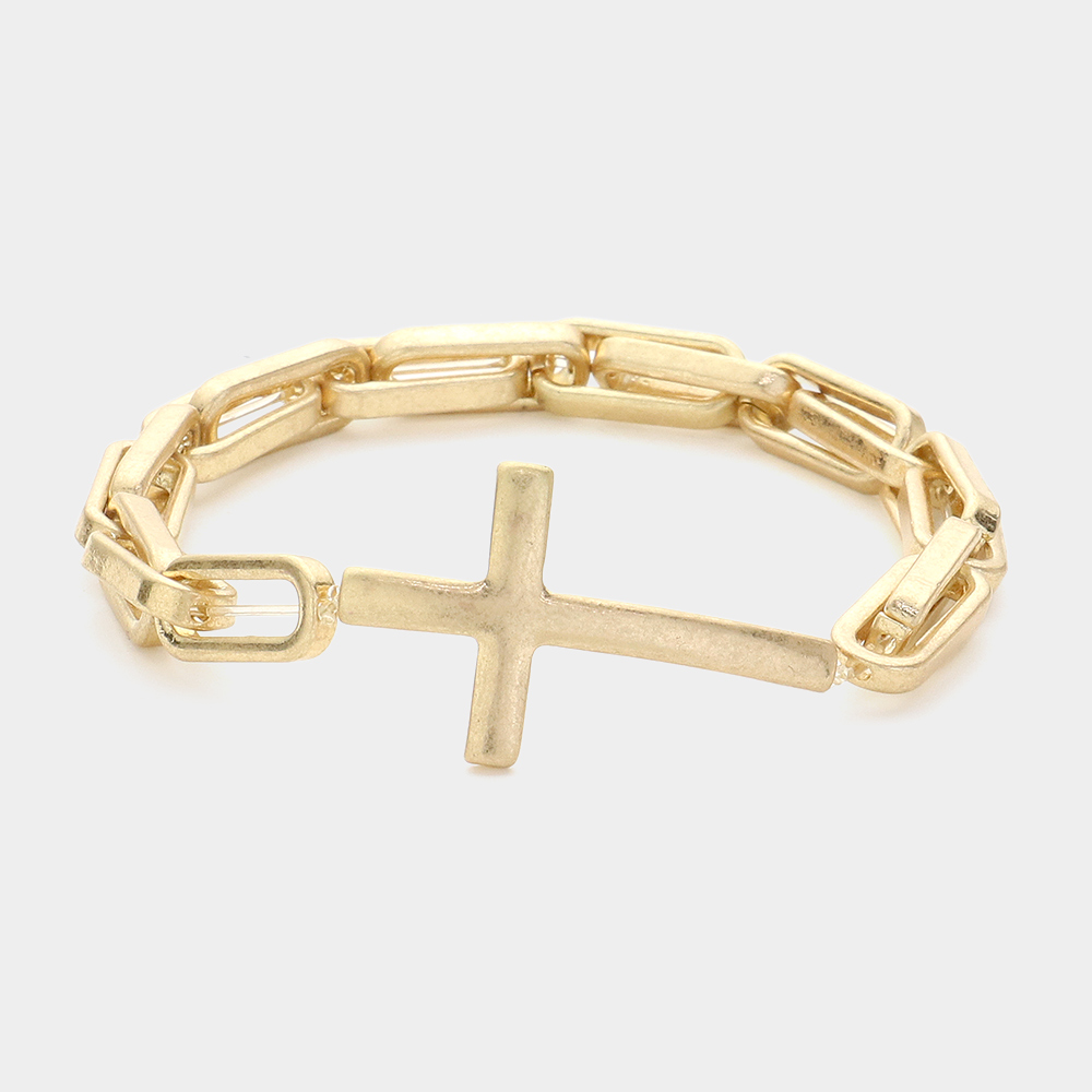 Metal Cross Pointed Hardware Chain Link Stretch Bracelet