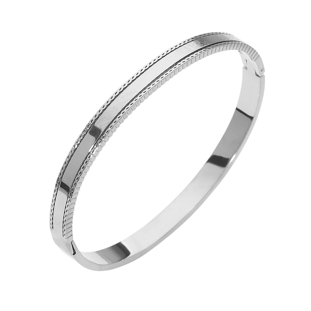 SECRET BOX_Stainless Steel Textured Hinged Bangle Bracelet