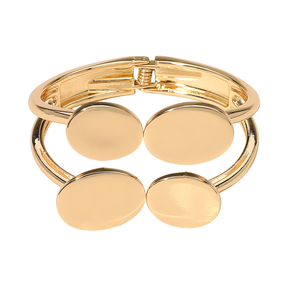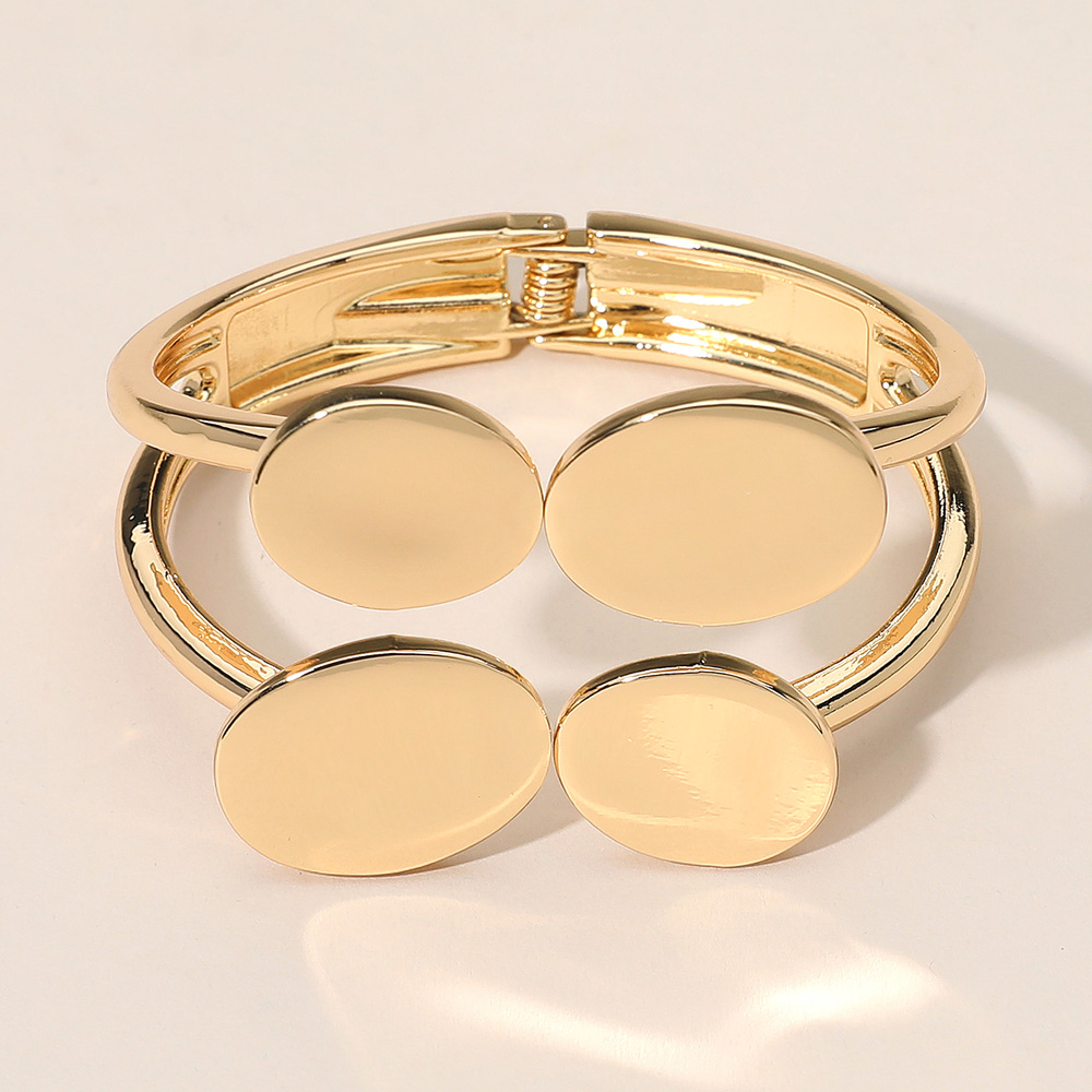Details • Size : 1.5" H, 2.3" D • Hinged Closure • Add a touch of modern elegance with this oval cuff bracelet featuring a sleek geometric design. Perfect for both casual and formal looks, this statement accessory enhances your style with contemporary sophistication and timeless appeal.