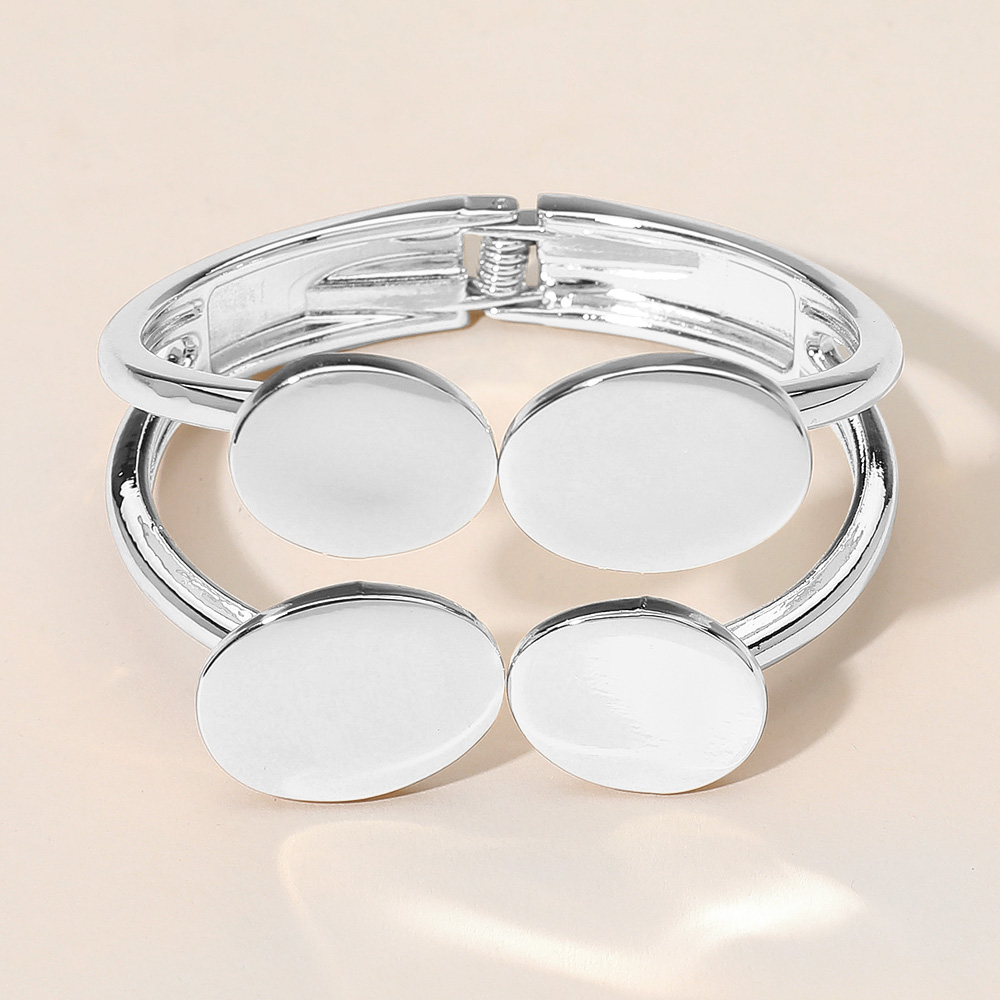 Details • Size : 1.5" H, 2.3" D • Hinged Closure • Add a touch of modern elegance with this oval cuff bracelet featuring a sleek geometric design. Perfect for both casual and formal looks, this statement accessory enhances your style with contemporary sophistication and timeless appeal.
