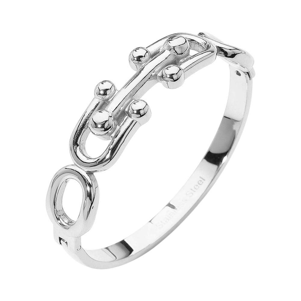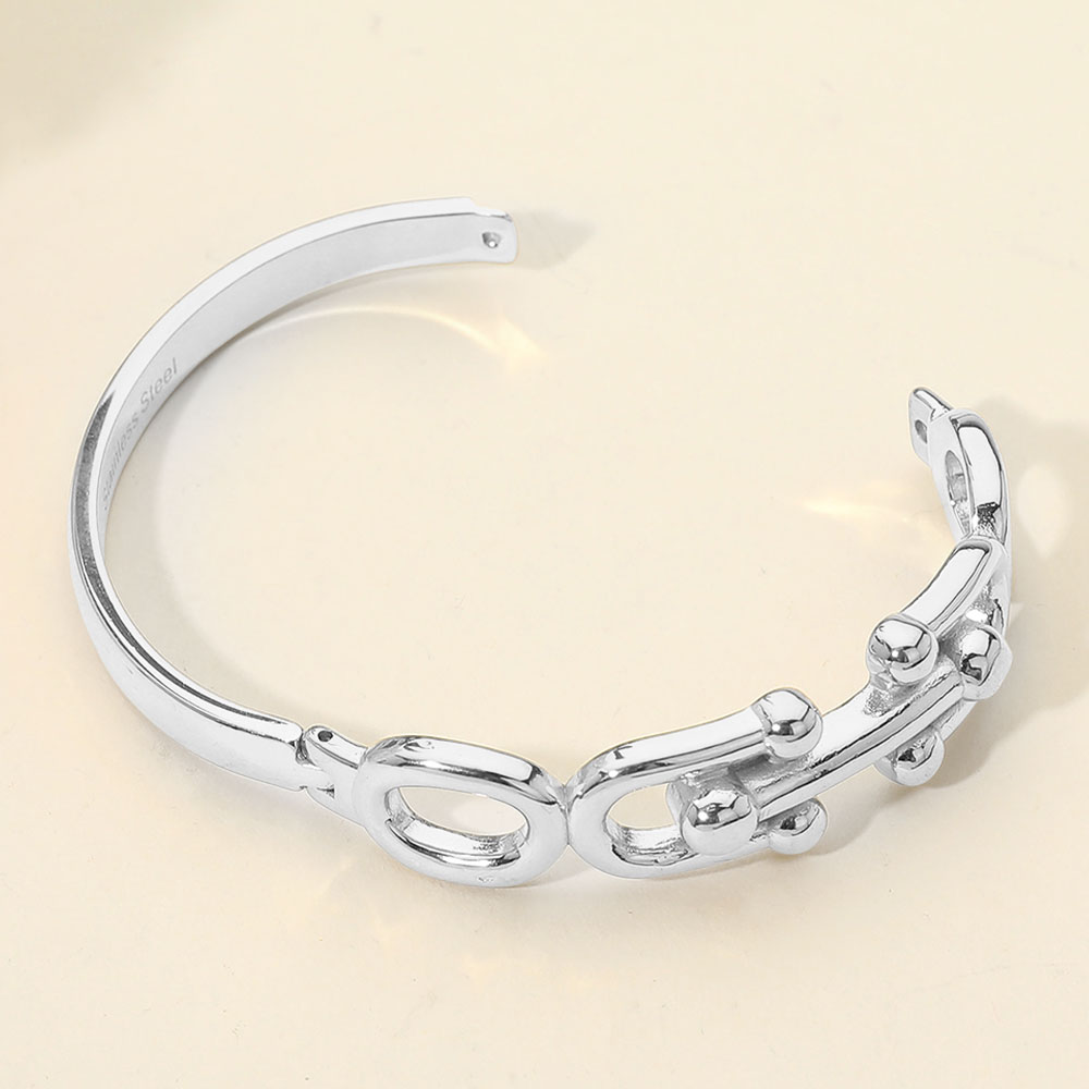 • Bold hinged bracelet featuring sculpted chain link details with smooth rounded accents. Designed for easy on and off wear, this bracelet delivers a strong yet refined look that elevates everyday outfits. Ideal for stacking or wearing solo, it’s a versatile statement piece for modern accessory collections.