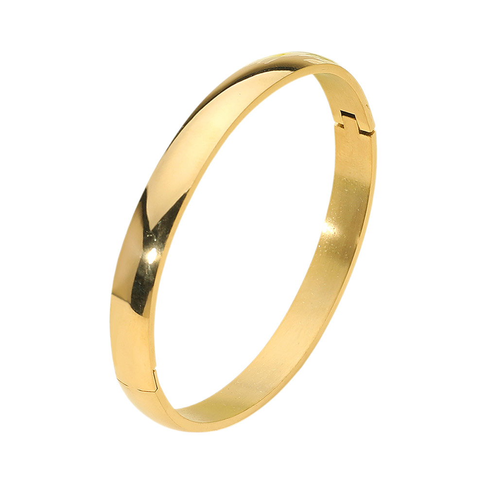 Details • Size : 0.3" H, 2.5" D • Hinged Closure • This stainless steel bangle showcases a minimalist, high-polish finish that exudes timeless sophistication. Its sleek, seamless design offers effortless versatility, perfect for elevating both casual and formal looks with understated elegance and lasting, refined modern appeal. • Stainless Steel