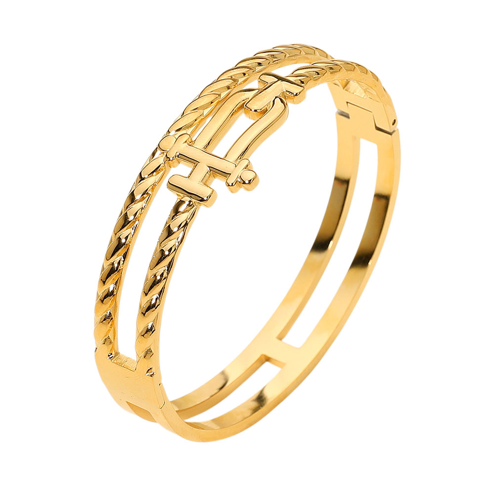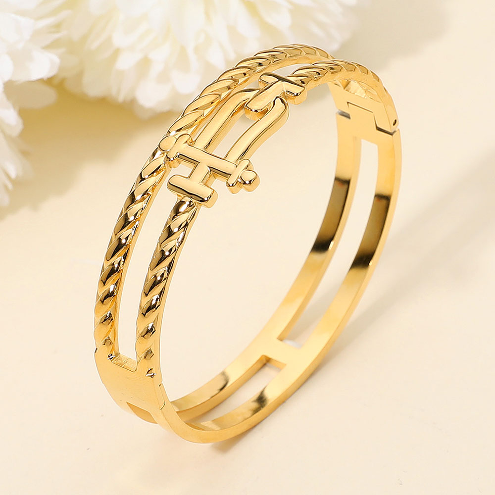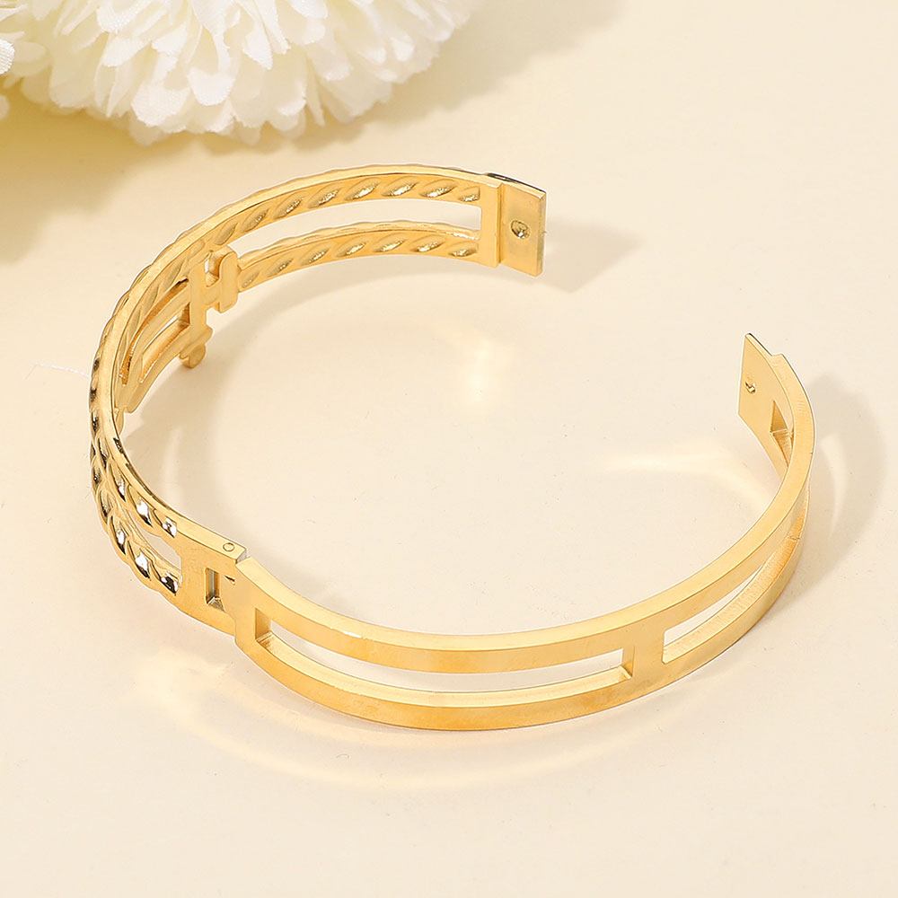• Statement hinged bangle showcasing a refined double-chain silhouette with sculpted detailing and a structured clasp design. Crafted for secure, comfortable wear, it layers effortlessly with other pieces or stands alone as a bold accent for everyday looks or elevated styling moments.