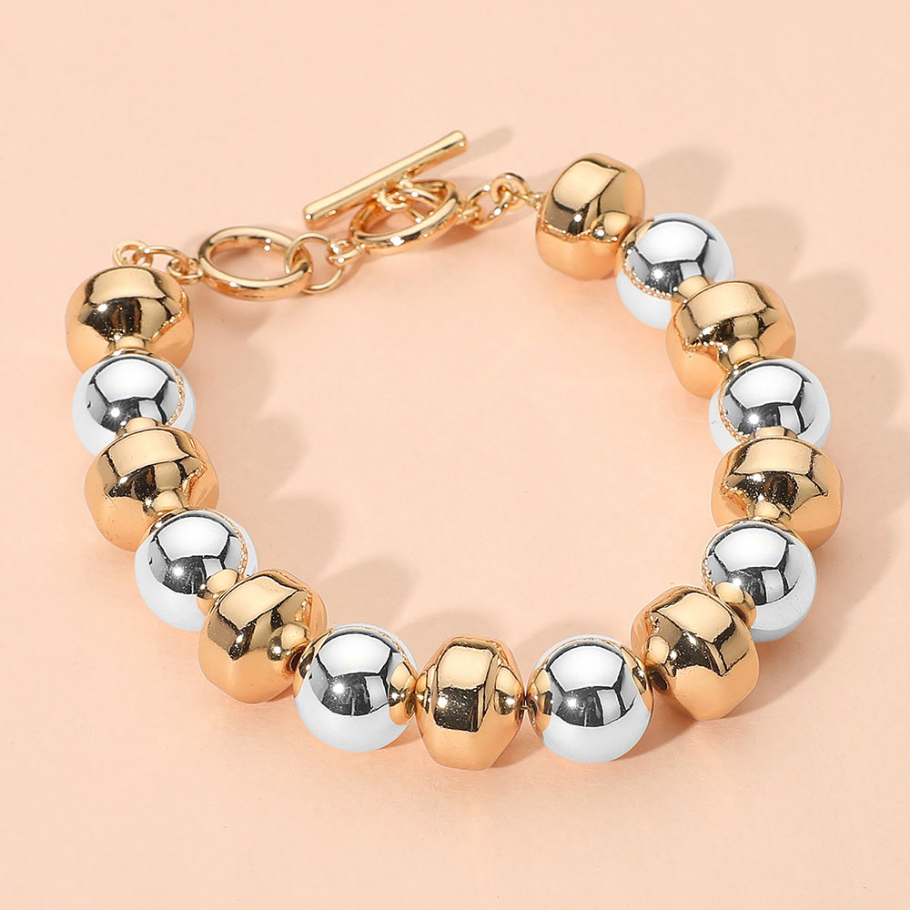 Details • Size : 0.5" H, 7.75" + 1" L • Toggle Closure • This two-tone beaded toggle bracelet combines polished round and faceted beads in a sleek alternating pattern. Finished with a secure toggle clasp, it offers a bold yet versatile design that pairs effortlessly with both everyday and special occasion looks. • Lead and Nickel Compliant