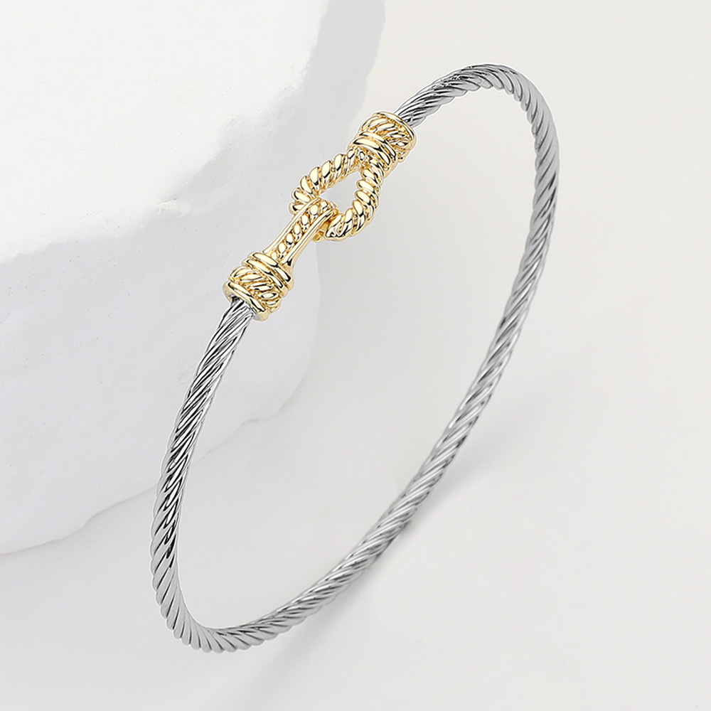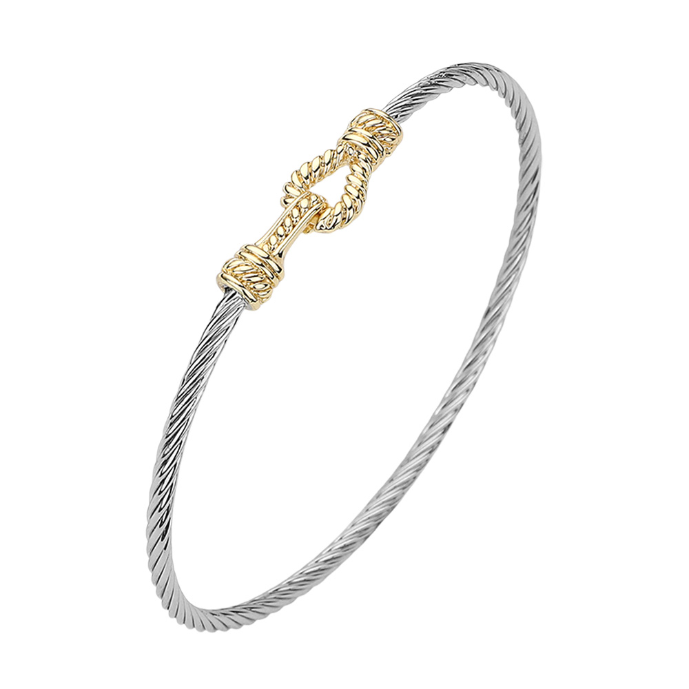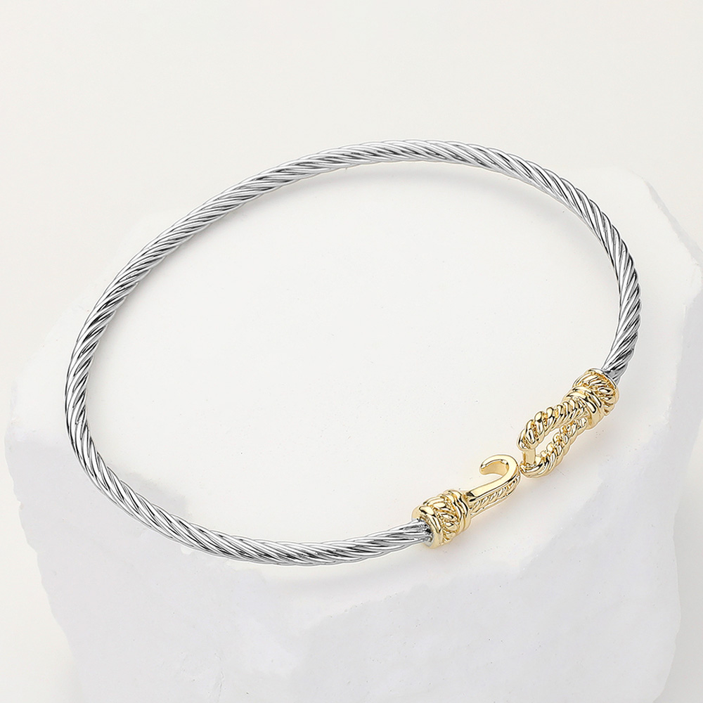 Two Tone Metal Rope Buckle Accented Bangle Bracelet