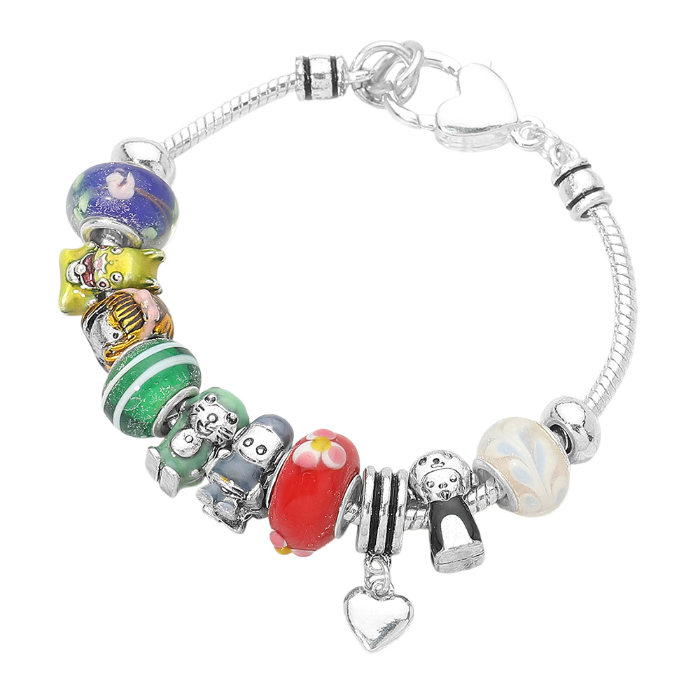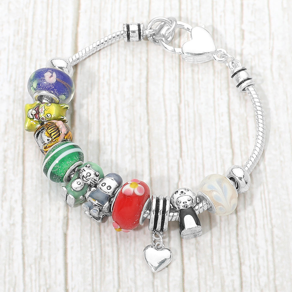 Details • Size : 1" H, 8" L • Lobster Clasp Closure • Whimsical charm bracelet featuring playful character accents, heart details, and decorative beads for a fun, expressive look. Designed to showcase personality and creativity, this statement accessory is perfect for casual wear, gifting, or adding a cheerful touch to layered bracelet styles. • Lead and Nickel Compliant