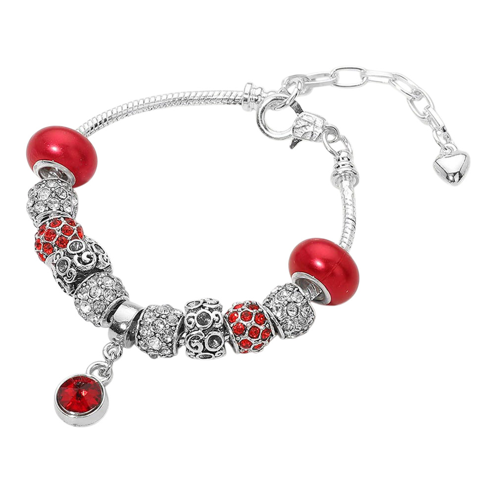 Round Stone Bezel Charm Accent Multi Beaded Bracelet