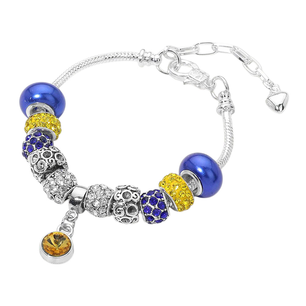Round Stone Bezel Charm Accent Multi Beaded Bracelet