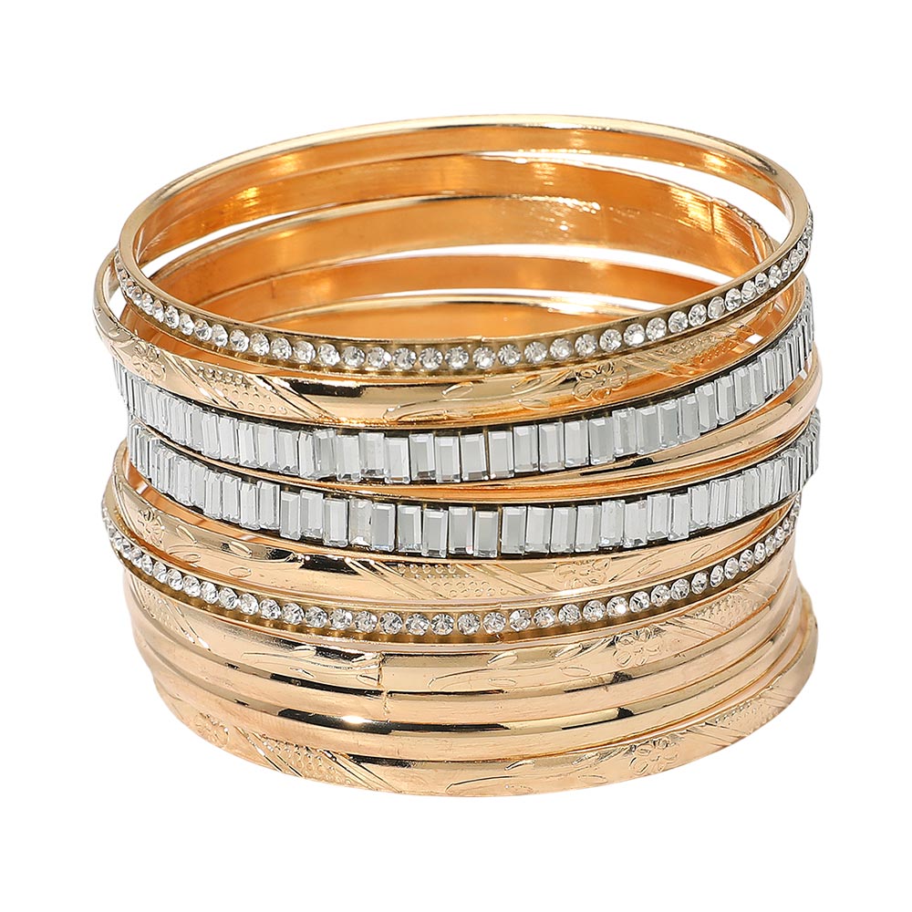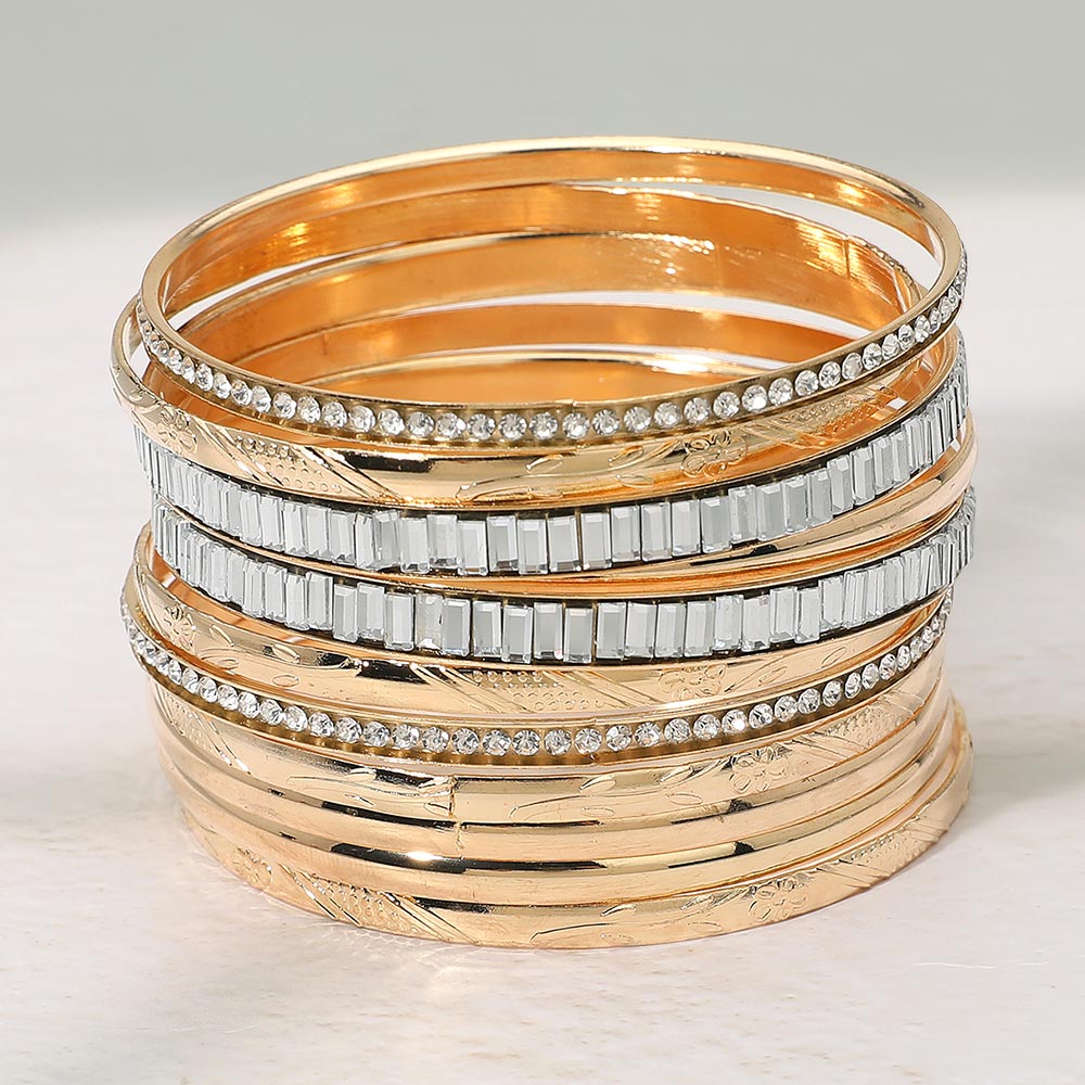 11PCS - Rhinestone Accented Multi Layered Bangle Bracelets