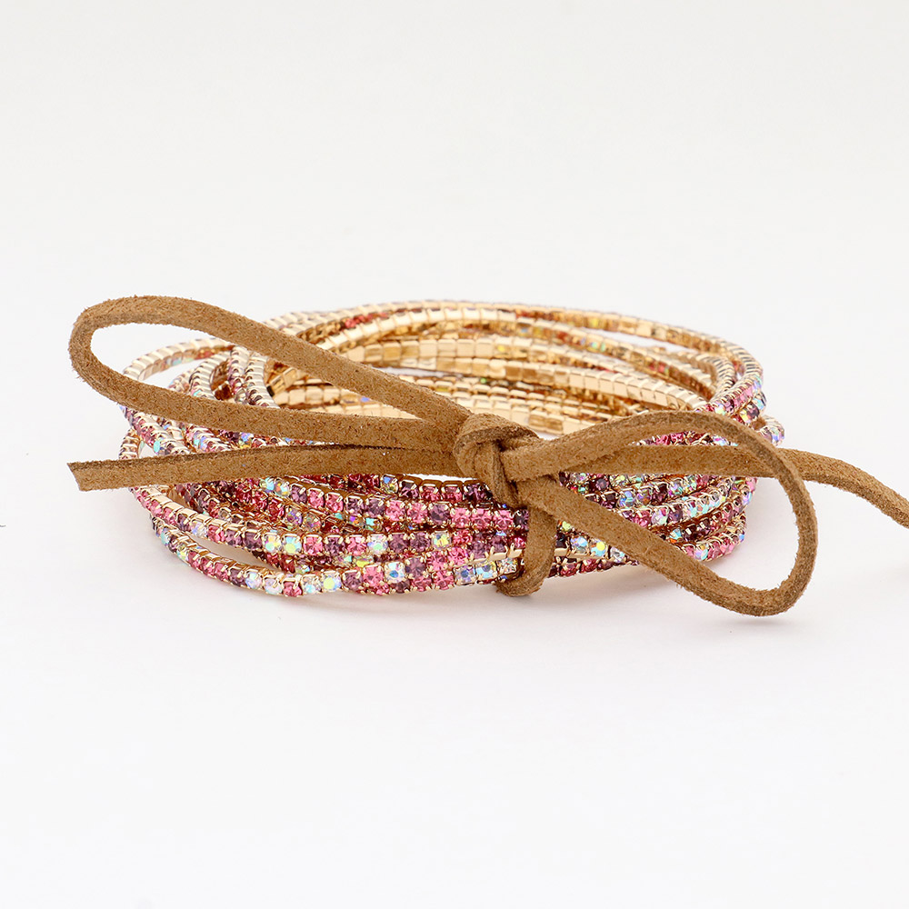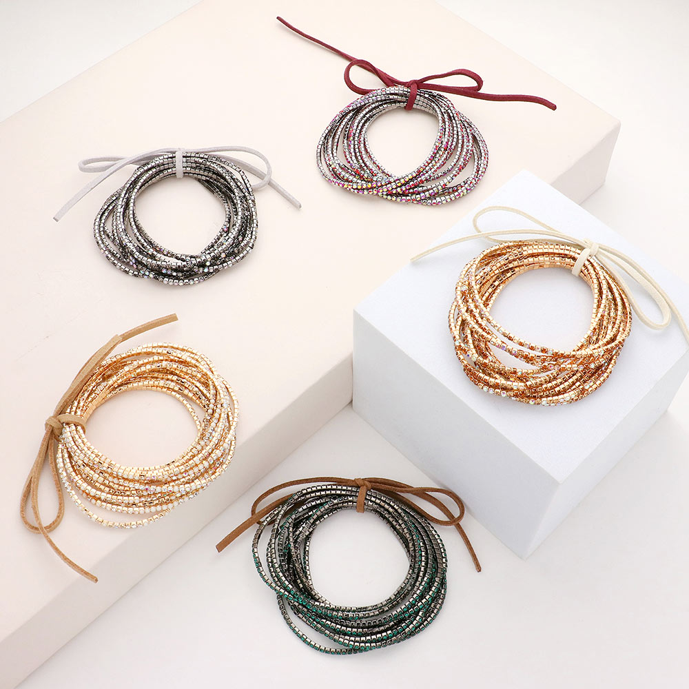 12PCS - Ribbon Colorful Rhinestone Layered Stretch Bracelets