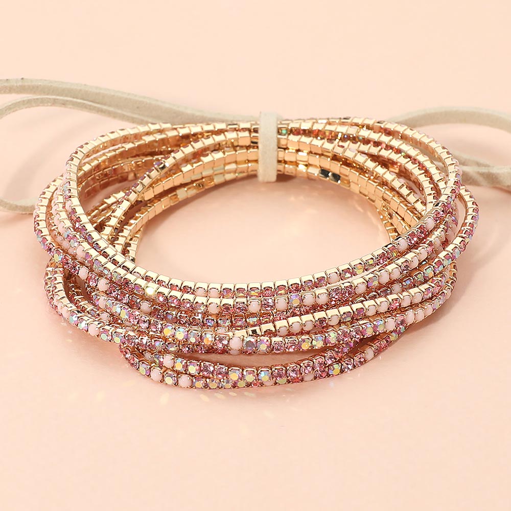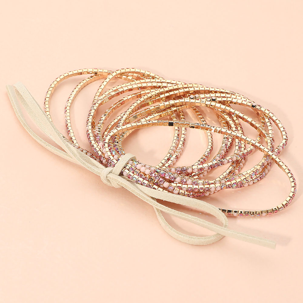 12PCS - Ribbon Colorful Rhinestone Layered Stretch Bracelets