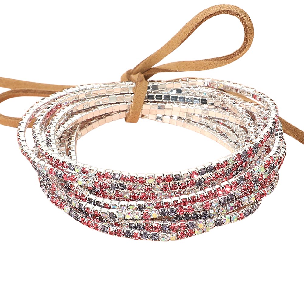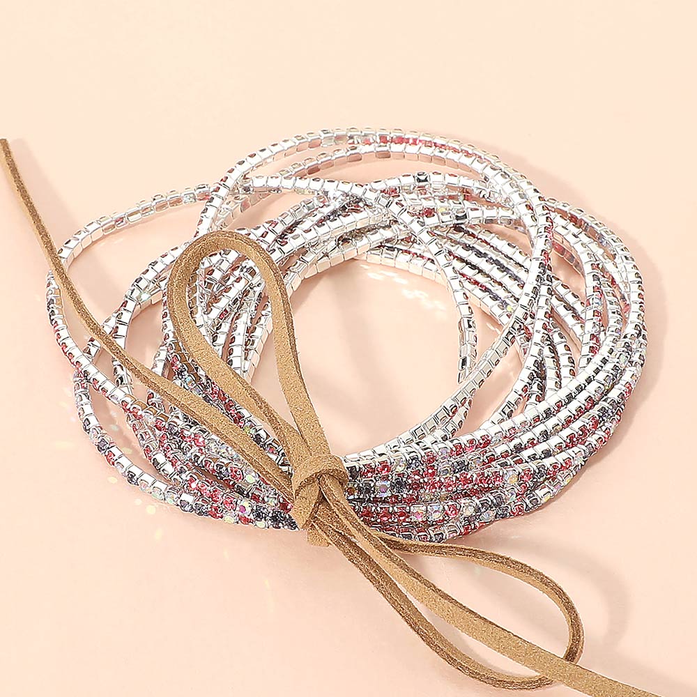 12PCS - Ribbon Colorful Rhinestone Layered Stretch Bracelets