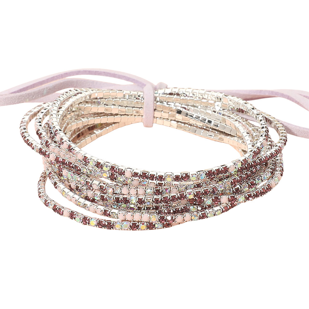 12PCS - Ribbon Colorful Rhinestone Layered Stretch Bracelets
