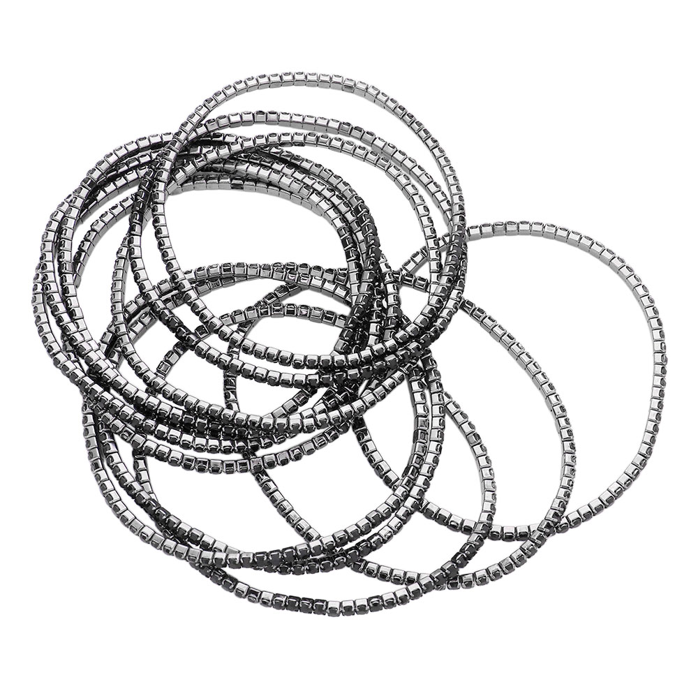 Details • Size : 1.2" H • Stretchable • Complete your look with this set of 12 stackable stretch bracelets. Sleek and versatile, these lightweight stretch bangles feature a shimmering design that layers beautifully for casual or dressy outfits, offering endless styling possibilities with modern elegance.