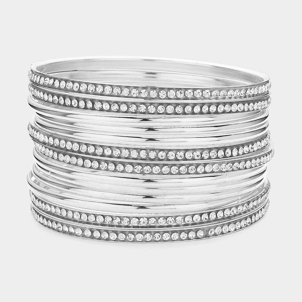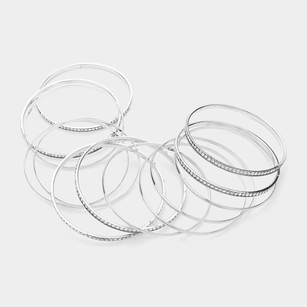 13PCS - Rhinestone Metal Bangle Layered Bracelets