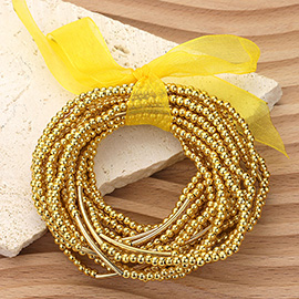 15PCS - Metal Ball Beaded Stretch Multi Layered Bracelets