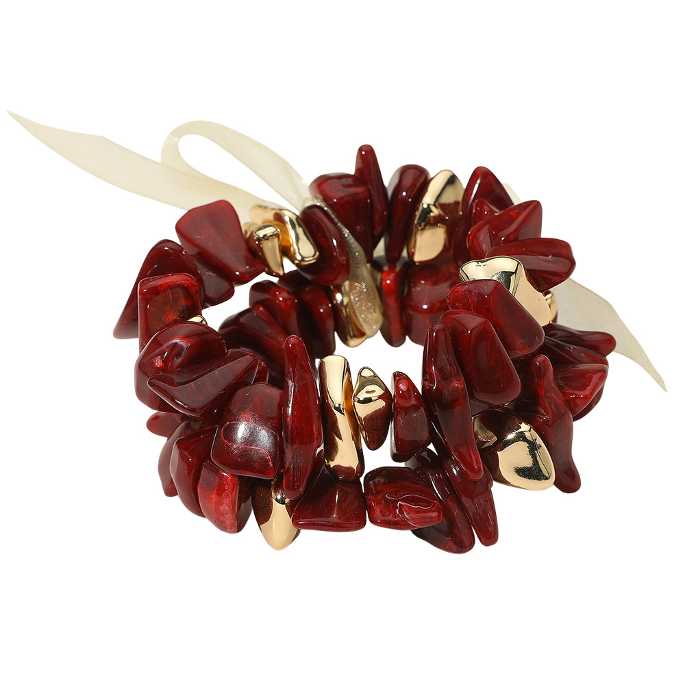 • Elevate your style with this chunky stone bead stretch bracelet featuring polished accents and a delicate ribbon detail. Its bold yet elegant design makes it a versatile accessory, perfect for adding texture and personality to both everyday looks and special occasions.