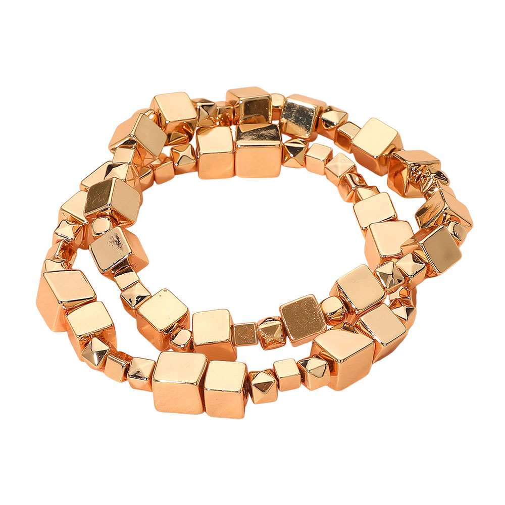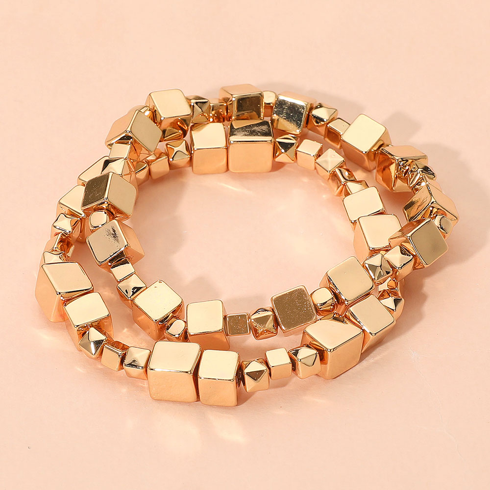 Details • Size : 0.6" H • Stretchable • This geometric cube stretch bracelet set features bold, modern shapes with a polished finish. Its versatile stacked design adds an edgy yet chic touch to any outfit, making it a standout accessory for both casual and dressy occasions. • Lead and Nickel Compliant