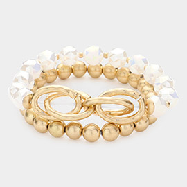 2PCS - Open Metal Oval Link Metal Ball Faceted Beaded Stretch Bracelets
