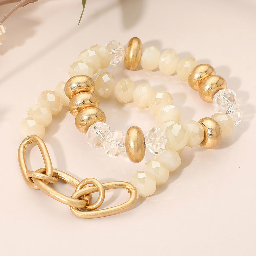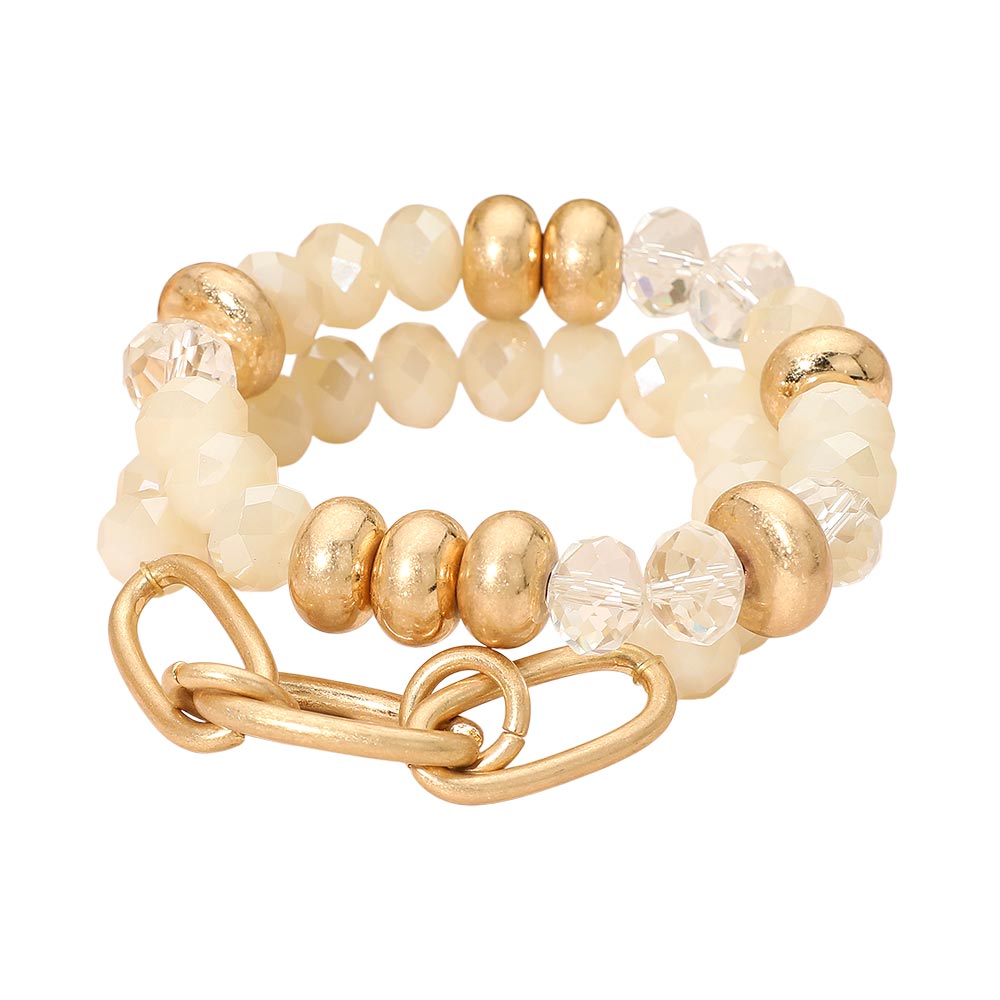 2PCS - Oval Link Accent Faceted Beaded Stretch Multi Layered Bracelets