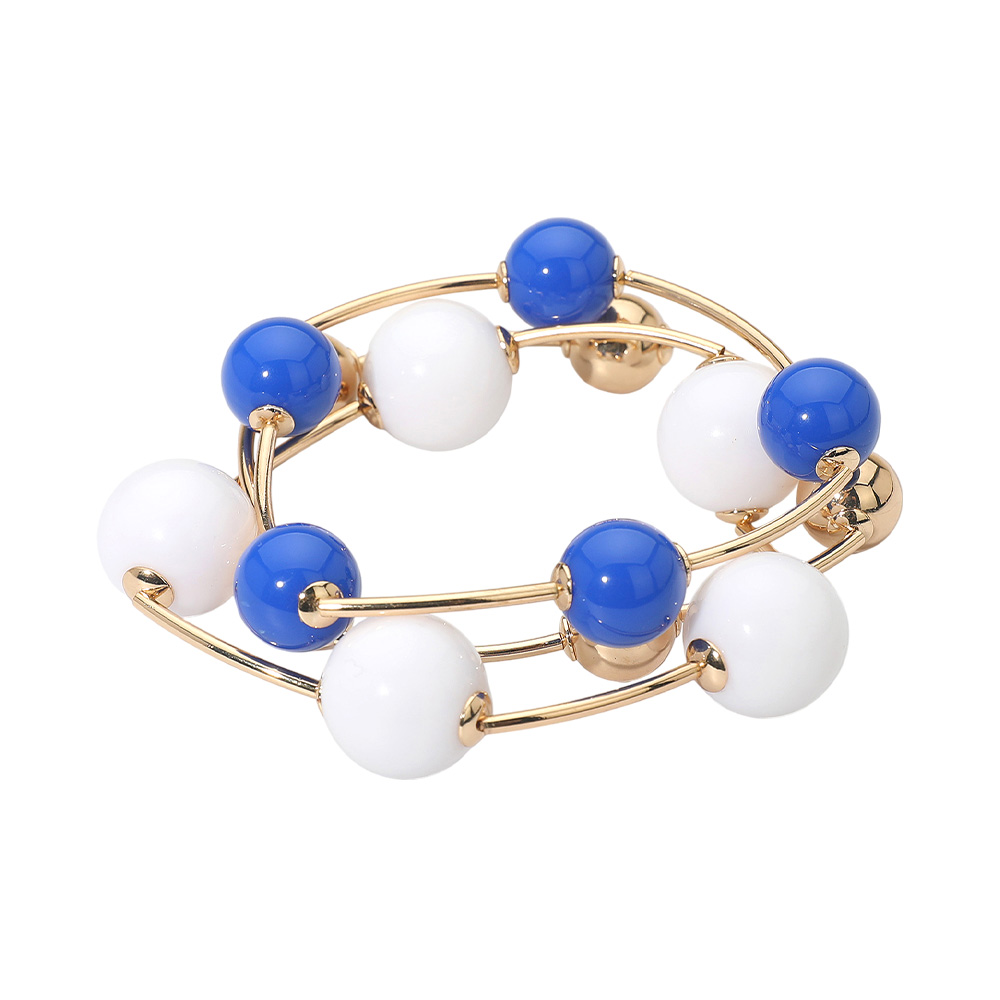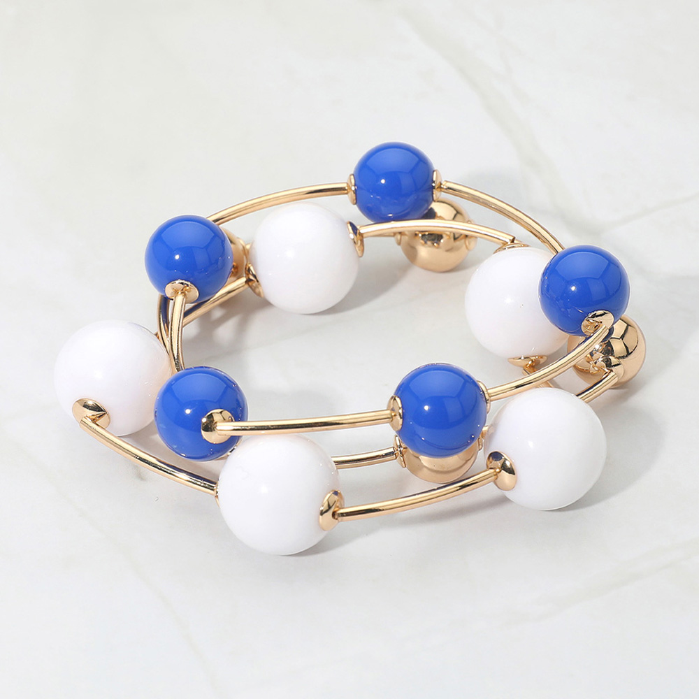 • Trendy bangle bracelet featuring bold round beads arranged on sleek bands for a playful and modern look. A fun statement piece that adds personality and charm to any outfit, perfect for stacking or wearing solo with stylish flair.