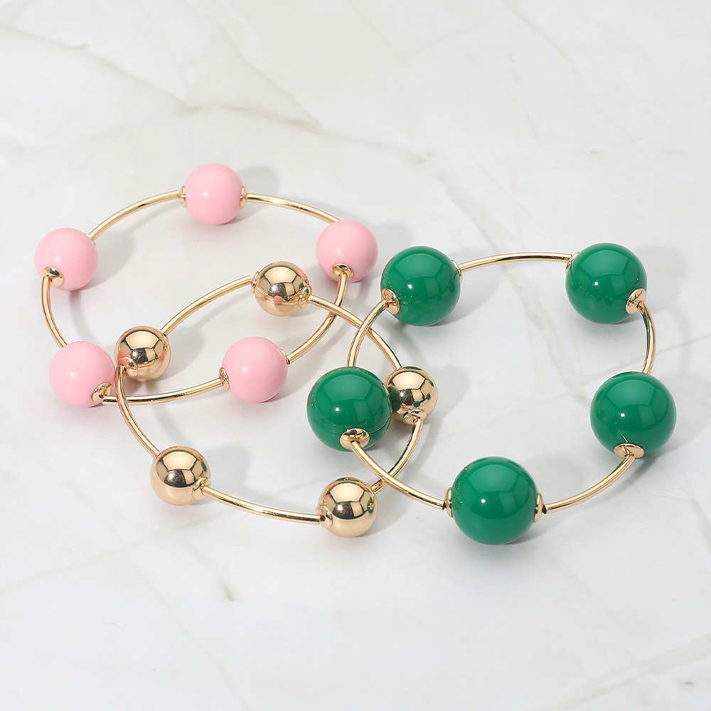 Details • Size : 1.75" H • Stretchable • Trendy bangle bracelet featuring bold round beads arranged on sleek bands for a playful and modern look. A fun statement piece that adds personality and charm to any outfit, perfect for stacking or wearing solo with stylish flair. • Lead and Nickel Compliant