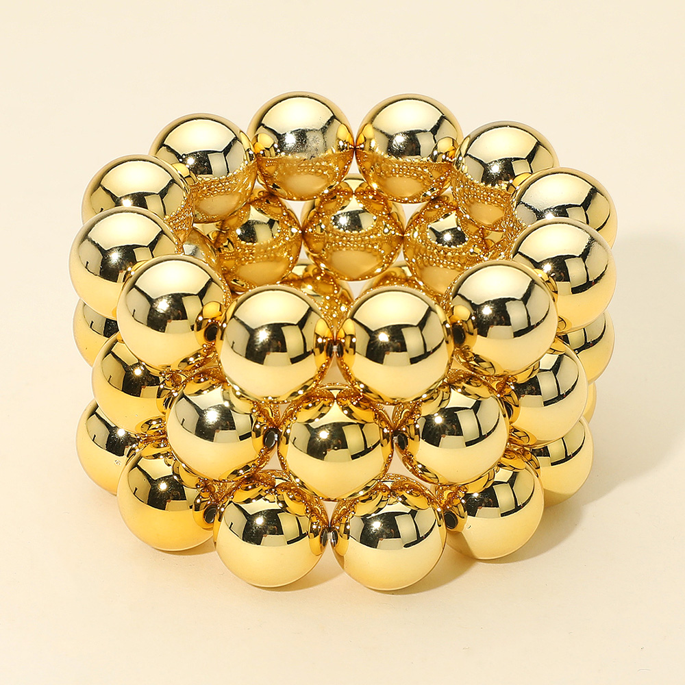 Details • Size : 2.1" H • Stretchable • Eye-catching wide beaded stretch bracelet featuring stacked polished spheres for a bold and fashionable look. Perfect for making a statement, this versatile piece enhances casual outfits and elegant ensembles alike. • Lead and Nickel Compliant