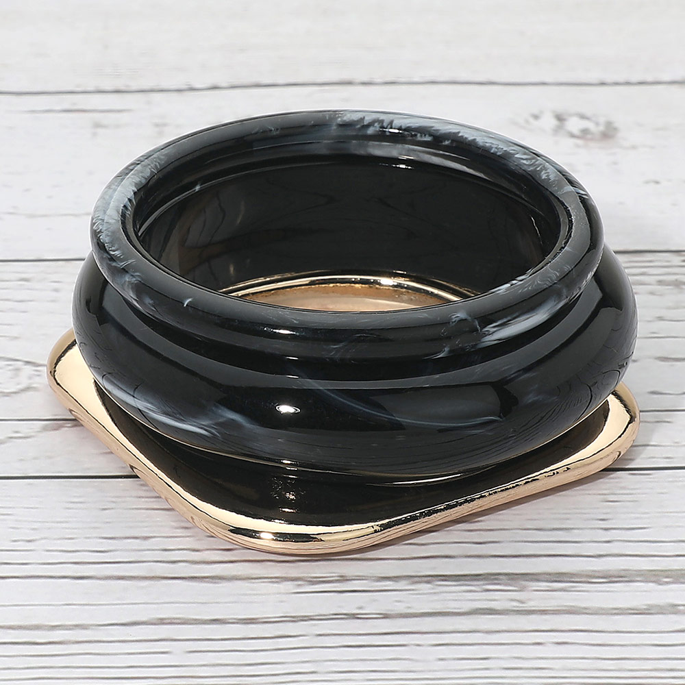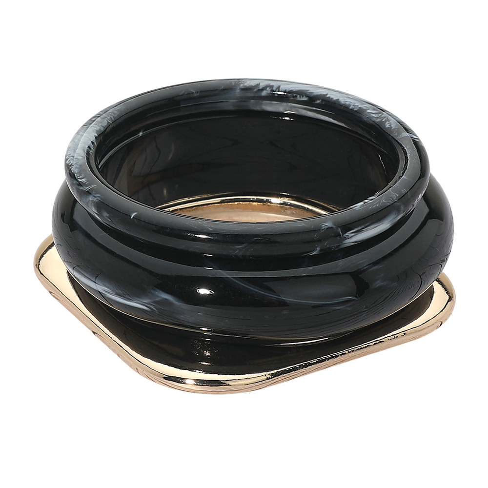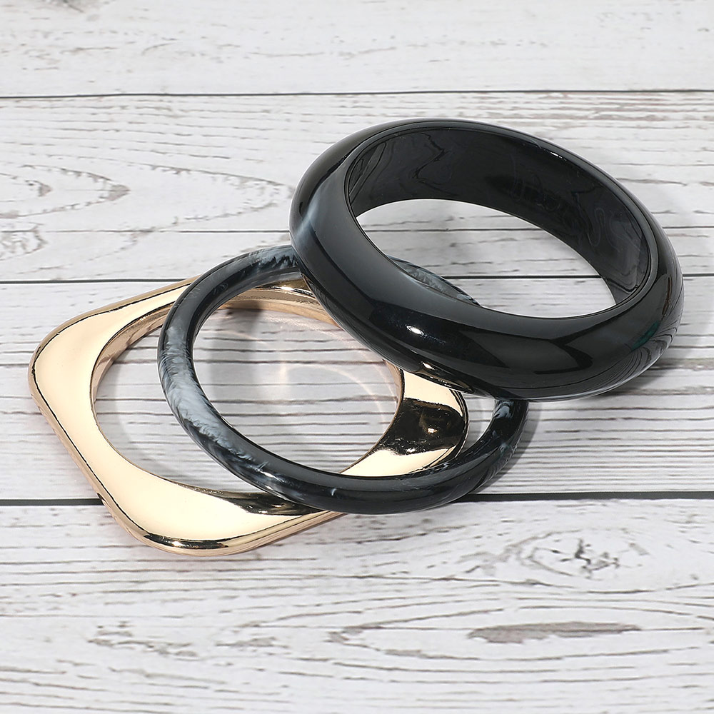 3PCS - Bold Modern Mixed Shape Resin Flat Square Metal Bangle Multi Layered Bracelets