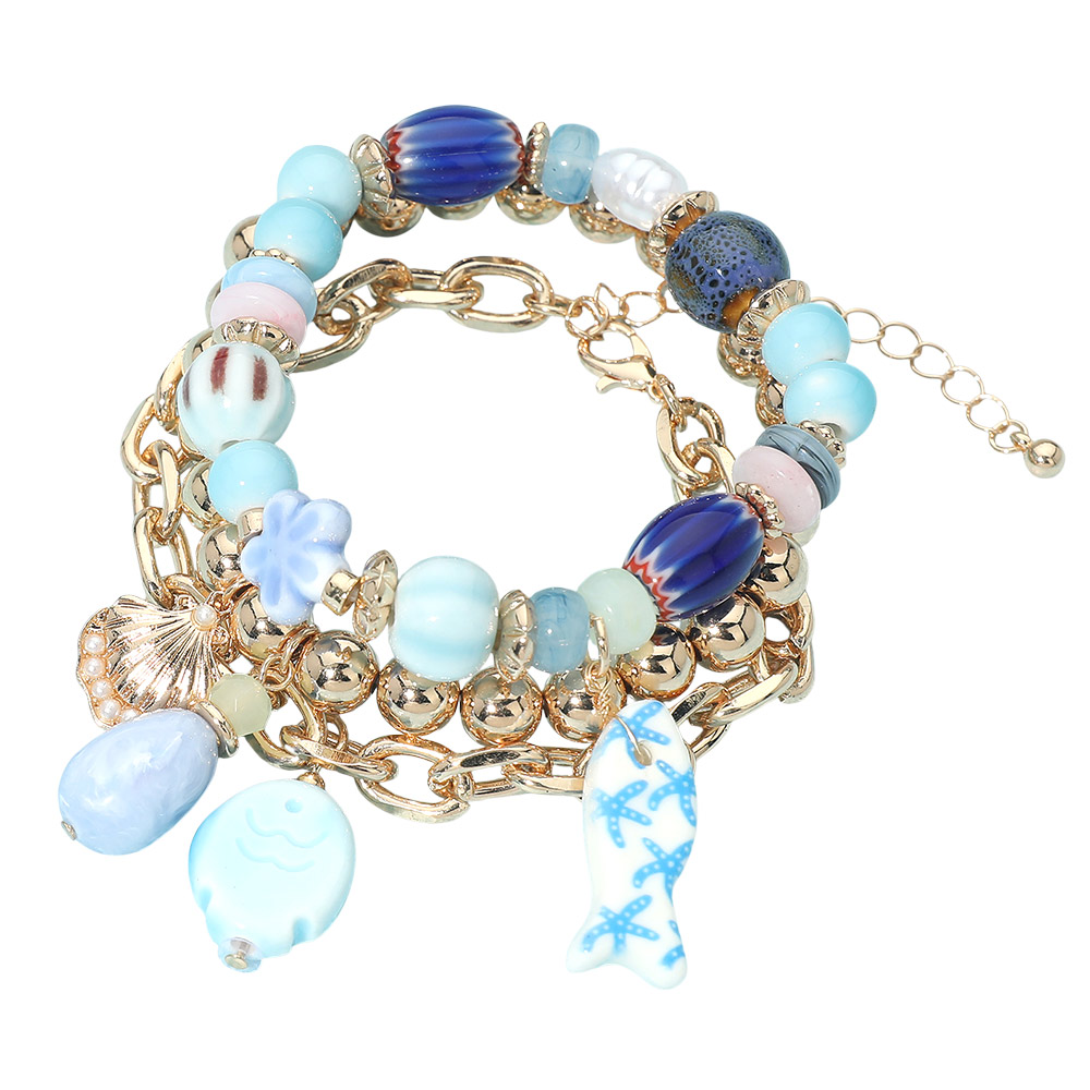 3PCS - Ceramic Fish Ocean Pearl Charm Beaded Multi Layered Bracelets