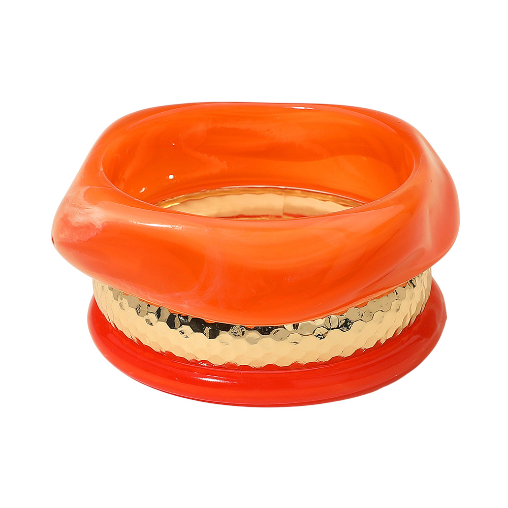 3PCS - Chunky Abstract Resin Hammered Metal Bangle Multi Layered Bracelets