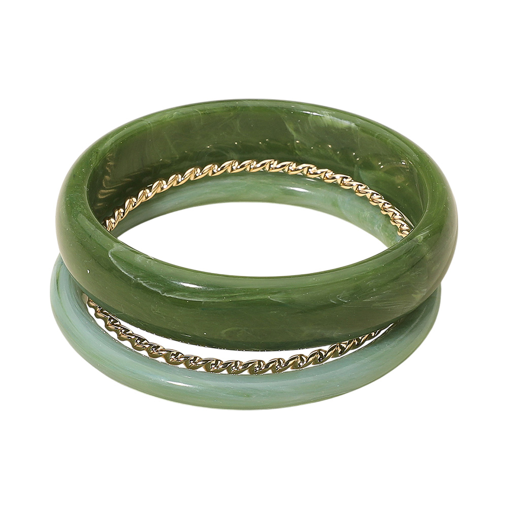 3PCS - Chunky Marbled Resin Twisted Metal Bangle Multi Layered Bracelets
