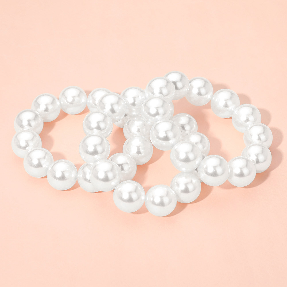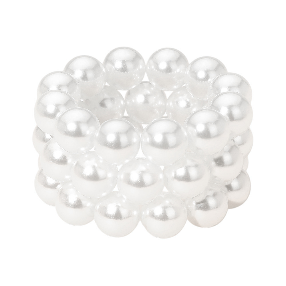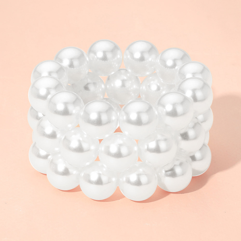 Details • Size : 2" H • Stretchable • Add timeless elegance with this stacked pearl stretch bracelet. Designed with multiple rows of luminous beads, it offers a chic layered look that’s perfect for special occasions or daily wear, blending sophistication with effortless charm. • Lead and Nickel Compliant